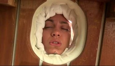 Les yeux bandés, elle se prend du sperme