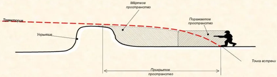 Для эффективного поражения целей стоит разобраться в этих понятиях. Ведь знание величины поражаемого пространства, прикрытого пространства, мертвого пространства позволяет правильно использовать укрытия для защиты от огня противника, а также принимать меры для уменьшения мертвых пространств путем правильного выбора огневых позиций и обстрела целей из оружия с более навесной траекторией.