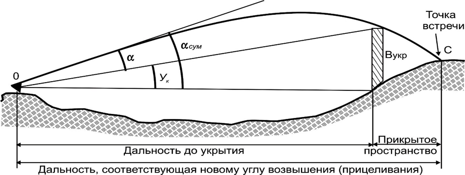 Следовательно, суммарный угол прицеливания (α сум.) равен сумме угла прицеливания (α) и угла укрытия (ук).