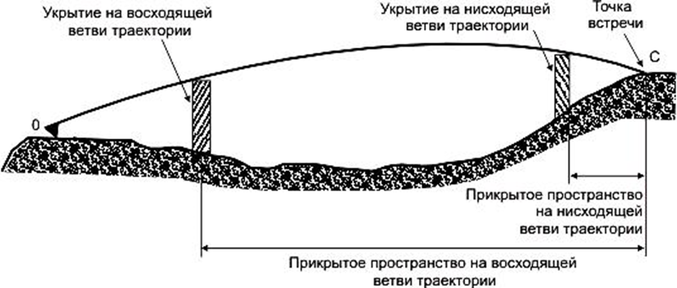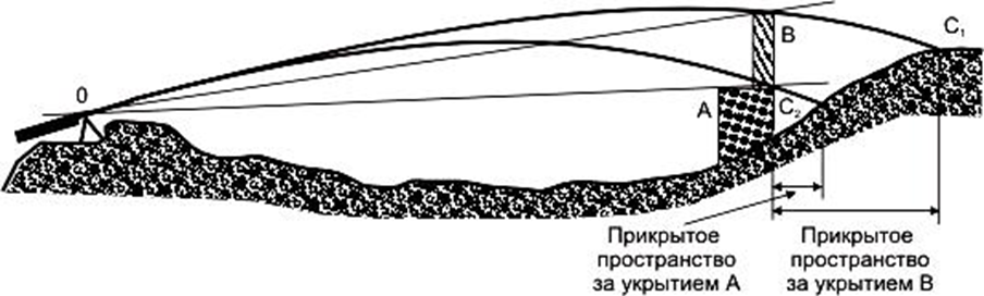 Прикрытым называется пространство за укрытием, не пробиваемым пулей от гребня до точки встречи. Величина прикрытого пространства зависит от высоты укрытия, угла встречи и расположения укрытия относительно вершины траектории. Чем выше укрытие, тем больше величина прикрытого пространства и, наоборот, чем ниже укрытие, тем меньше его величина в данных условиях.