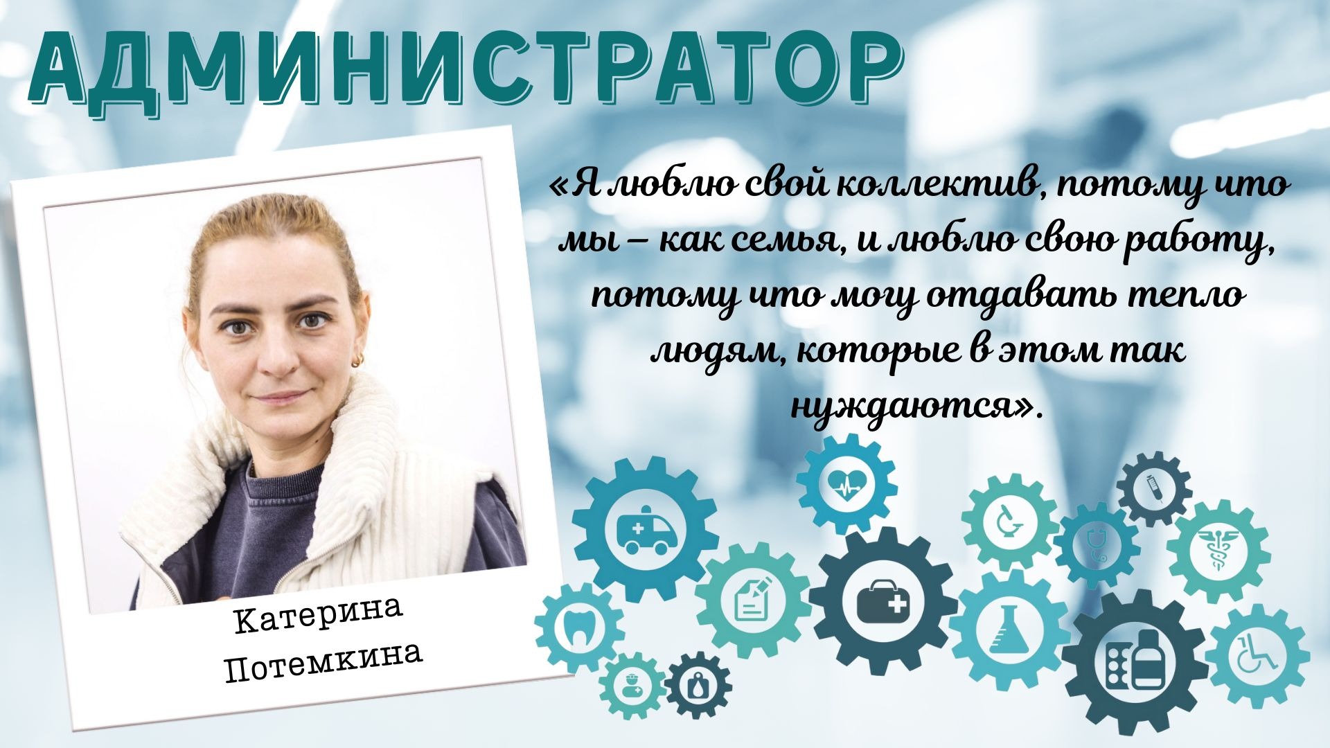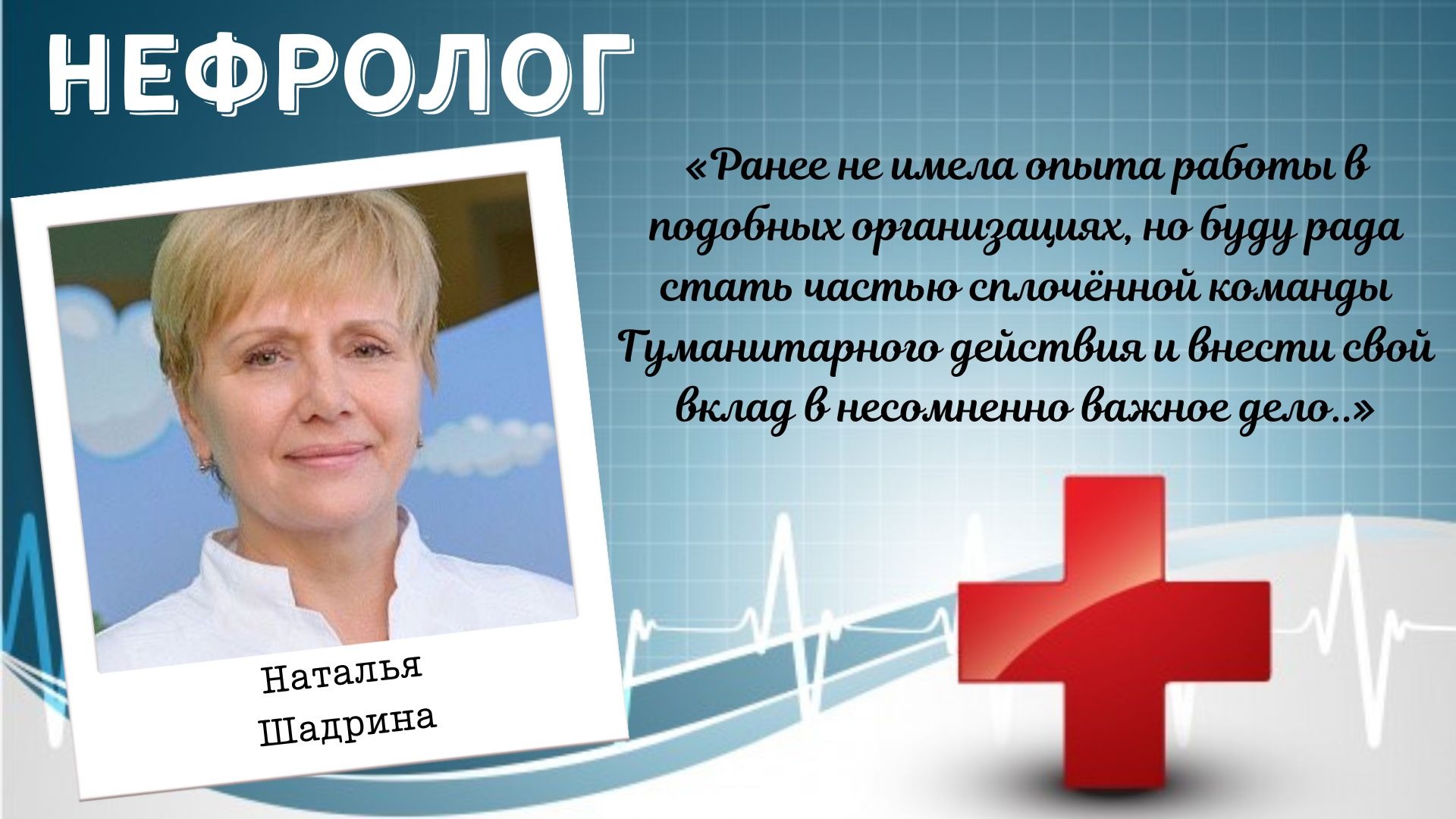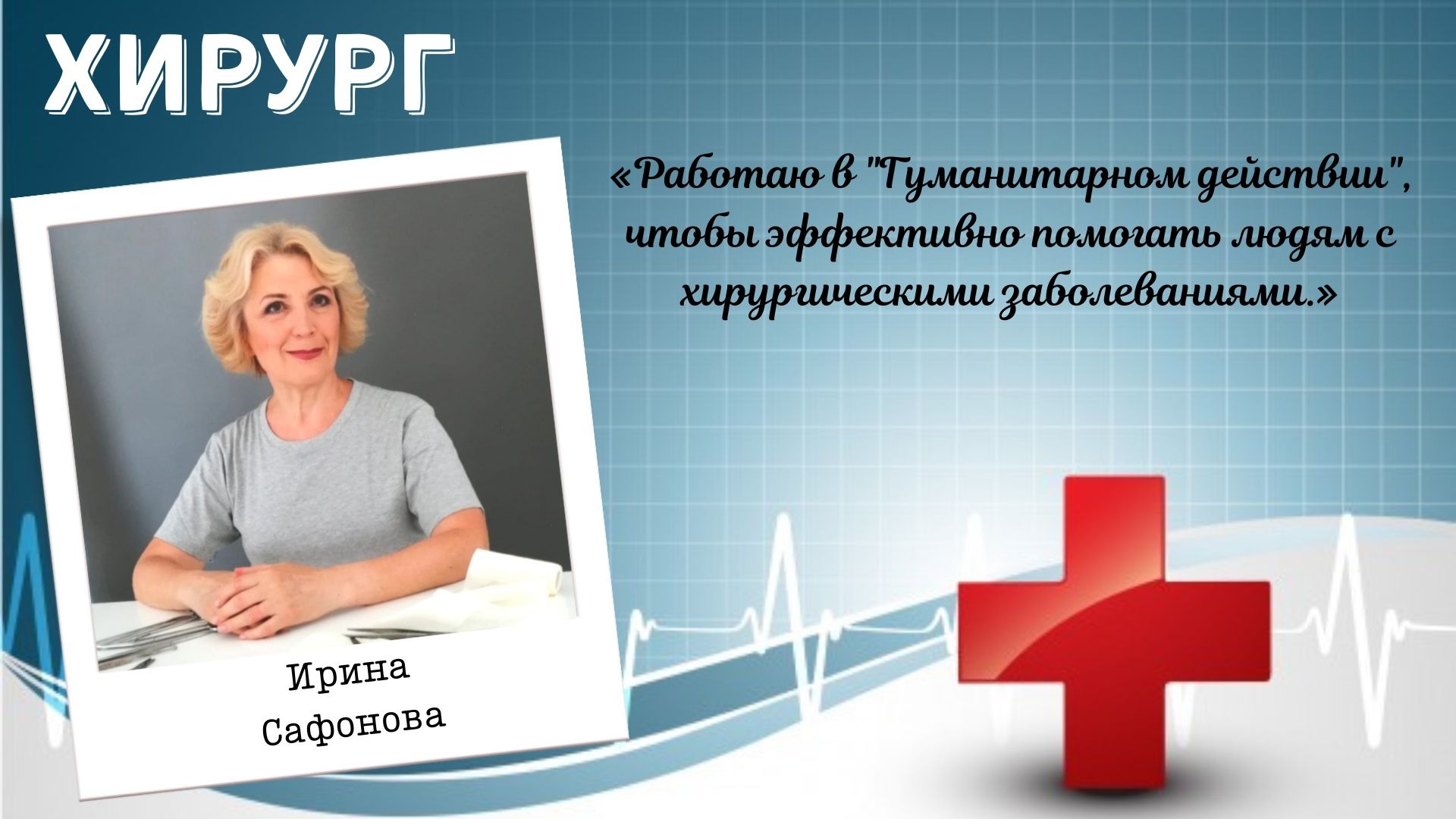 Стаж – 47 лет. Параллельно занимается волонтерской работой в Мальтийской службе помощи и Благотворительной больнице.