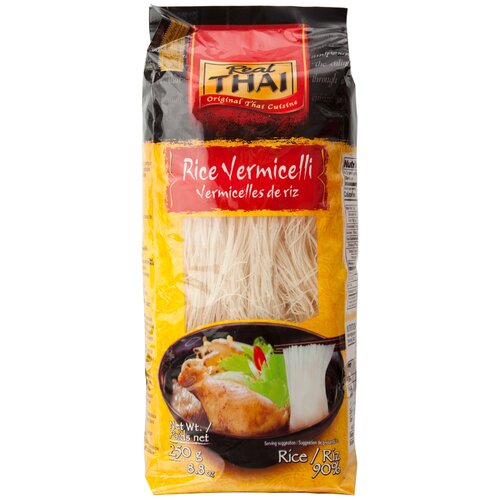 Les vermicelles de riz, contrairement aux pâtes habituelles, ne sont pas fabriquées à partir de blé, mais de farine de riz. Il ne contient donc pas de gluten et convient donc aux personnes atteintes de la maladie coeliaque. Les vermicelles de riz REAL THAI ne contiennent que deux ingrédients : de l'eau et du riz. C'est un produit idéal pour ceux qui surveillent leur silhouette, adhèrent à une bonne nutrition et prennent soin de leur santé. Les vermicelles de riz sont riches en glucides complexes et en protéines végétales facilement digestibles. Grâce à cela, il rassasie parfaitement, satisfait longtemps la sensation de faim, mais ne laisse pas de sensation de lourdeur. Les vermicelles de riz contiennent également des vitamines B et de la vitamine E, qui ont un effet bénéfique sur le système nerveux et améliorent l'état de la peau. En raison du manque de fibres alimentaires, il peut être consommé par les personnes souffrant de problèmes gastro-intestinaux, car il ne provoque pas de ballonnements ni de gaz, est facilement digestible et n'alourdit pas les organes du système digestif. Les vermicelles de riz REAL THAI ne nécessitent pas de cuisson. Vous pouvez simplement verser de l'eau bouillante dessus et laisser reposer 5 à 10 minutes, en remuant de temps en temps. Il n'a pas de goût prononcé, mais absorbe parfaitement les goûts et les arômes de diverses sauces, épices et bouillons. C'est une base idéale pour préparer un grand nombre de plats. Les vermicelles de riz peuvent être servis en accompagnement léger avec divers plats de légumes ou de viande. Il peut être ajouté aux soupes ou transformé en salades et en collations. Et si vous ajoutez des épices, des sauces, des légumes, des légumineuses, des noix, de la viande ou du poisson et d'autres garnitures à votre goût, cela deviendra un plat indépendant original de style asiatique.