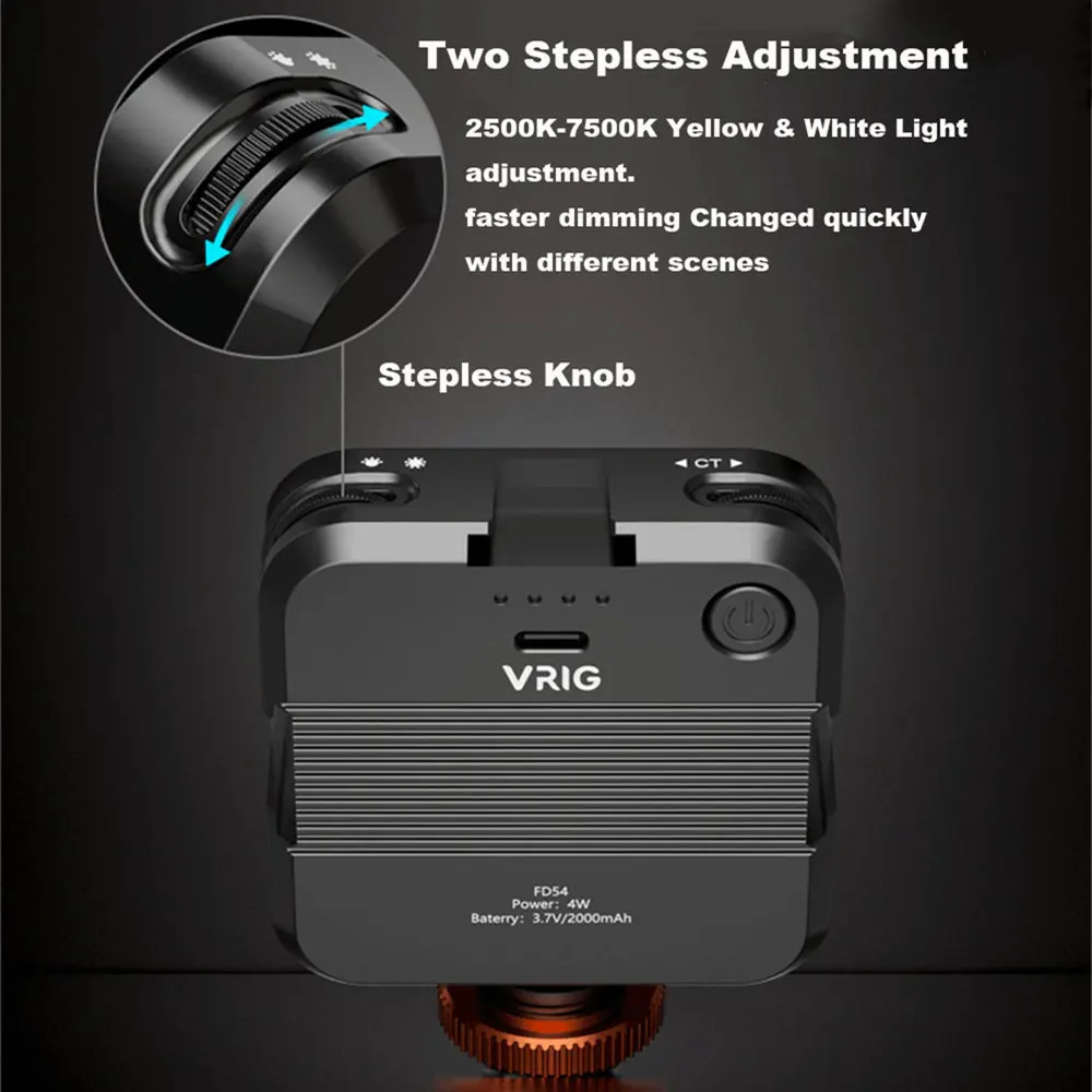 ccyRxRJGHere you can buy VRIG BI-color LED Video Light Camera Light 2500K-7500K Mini Fill Light with Extend 3 Cold Shoe 2000mAh Type-c Port Panel Lamp with free delivery to your post office.