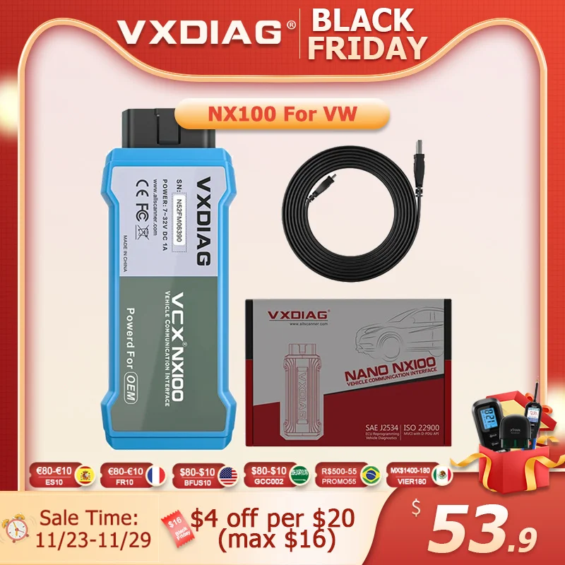VXDIAG NANO NX100 For VW 2005-Now OBDII Scanner ECU Coding Active Test Car Scan Tool Support J2534 Key Programming Free Update - Купить с бесплатной доставкой