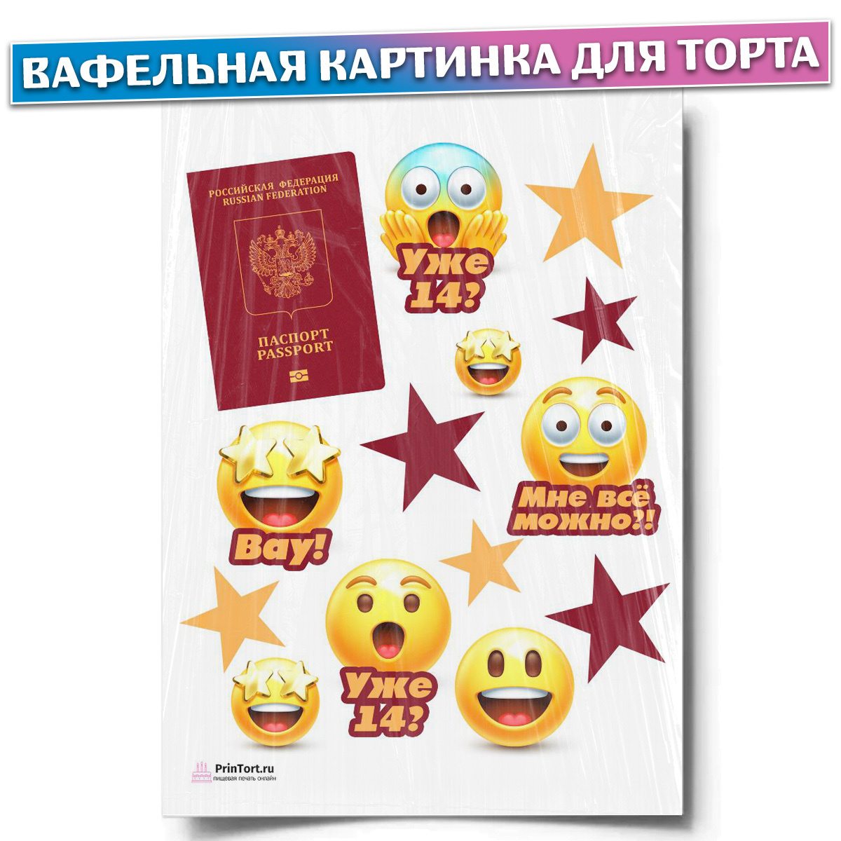 Бестселлер Вафельная картинка на торт ПАСПОРТ 14 лет, размер картинки (25х35 см) Украшение для торта и выпечки 42 отзыва