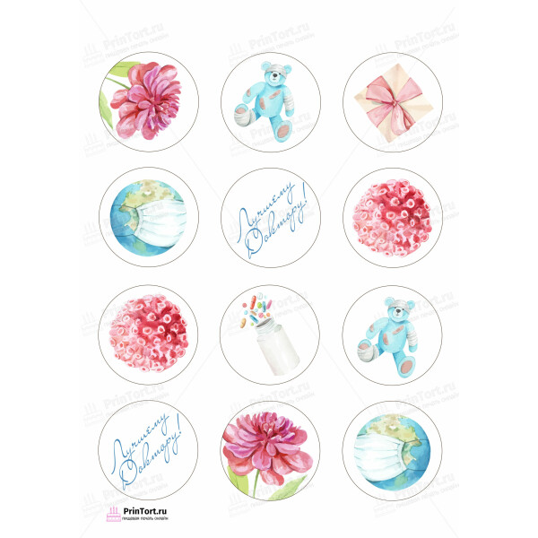 Капкейки-6 см Медику вафельная картинка . День Медика-1 вафельная картинка .