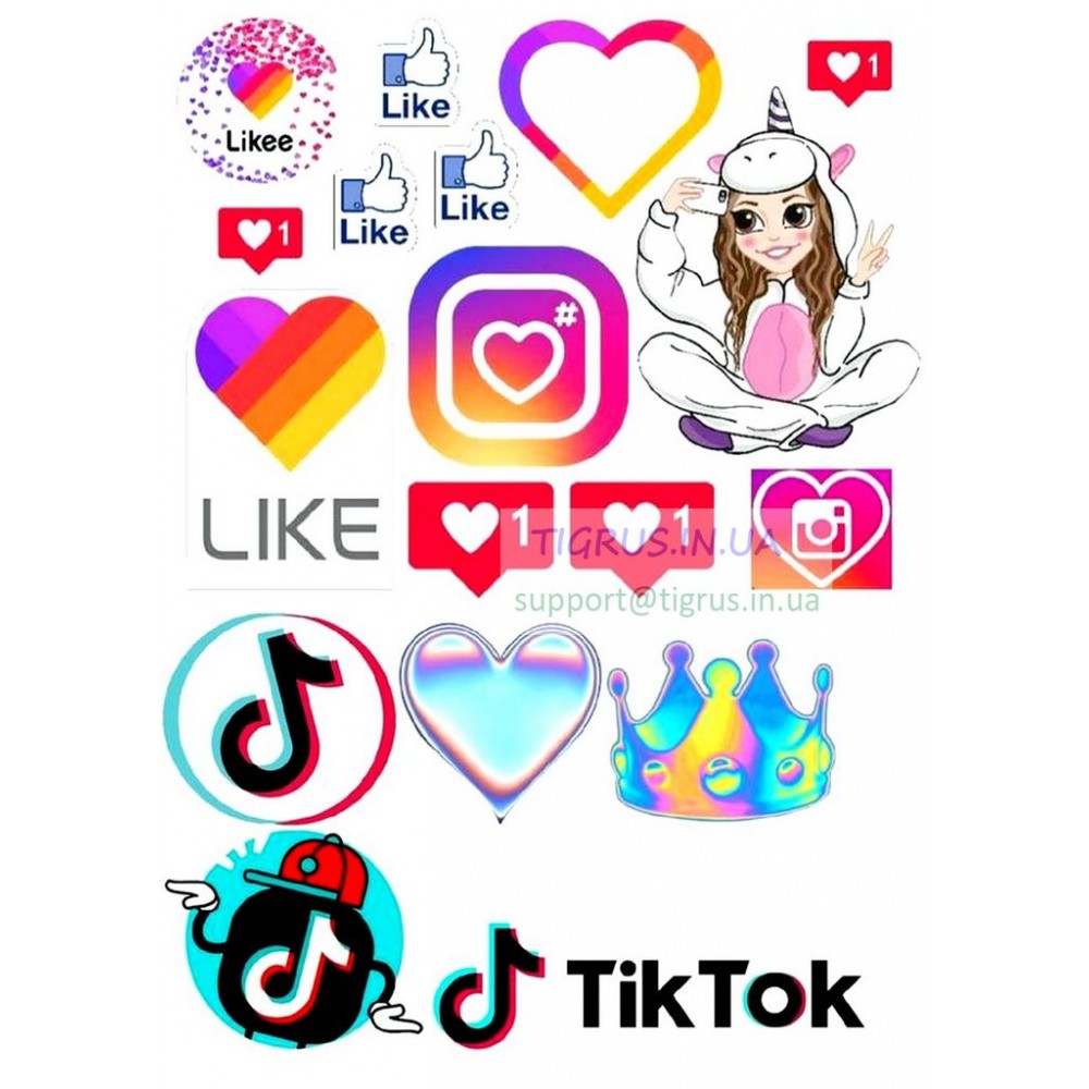 Вафельные картинки тик ток, инстаграм, лайк, фейсбук . Сахарные картинки социальные сети . Большой выбор, яркие картинки, есть Картинки с соцсетями приобретают все большую популярность и людей желающих получить торт в виде, или с использованием, вафельных . . .