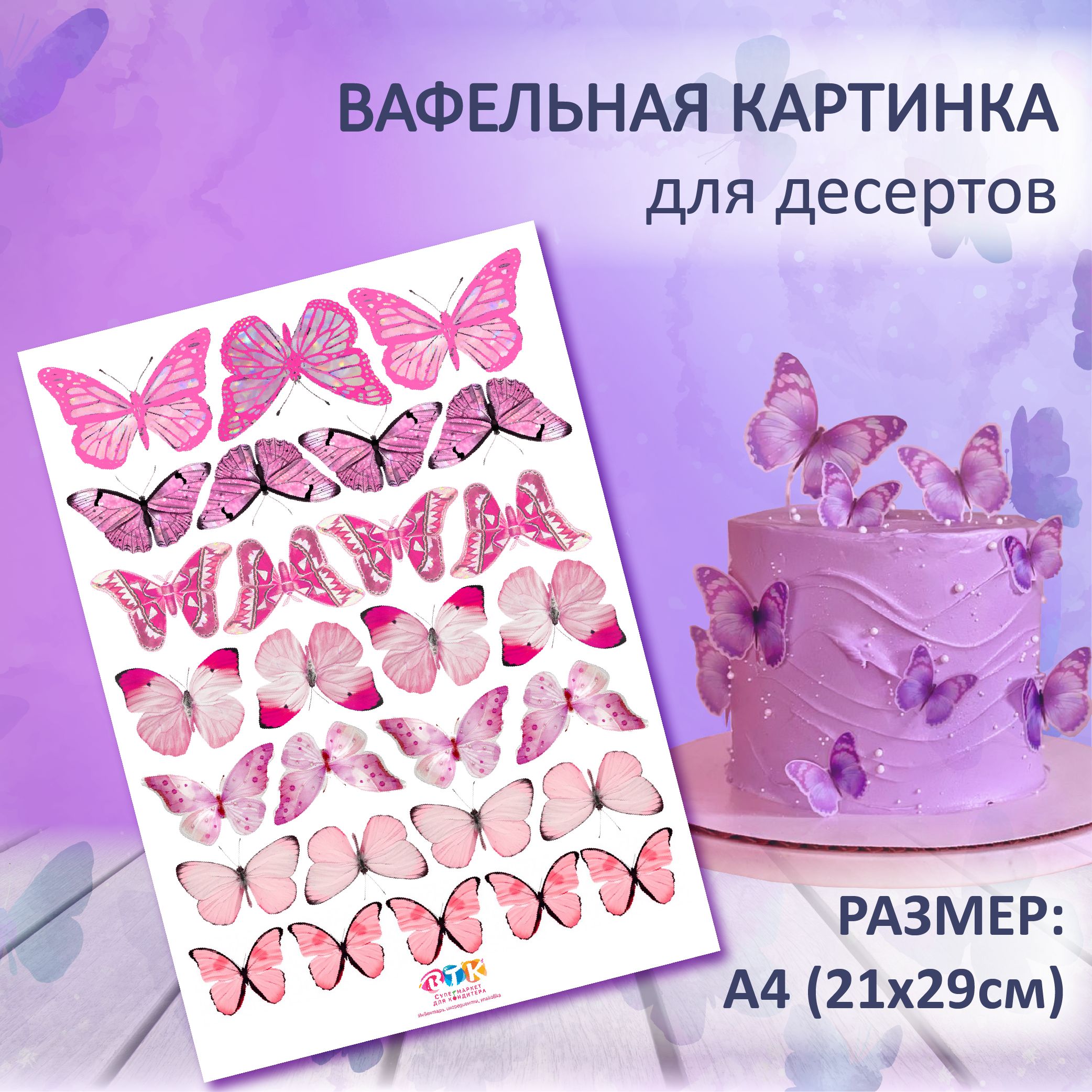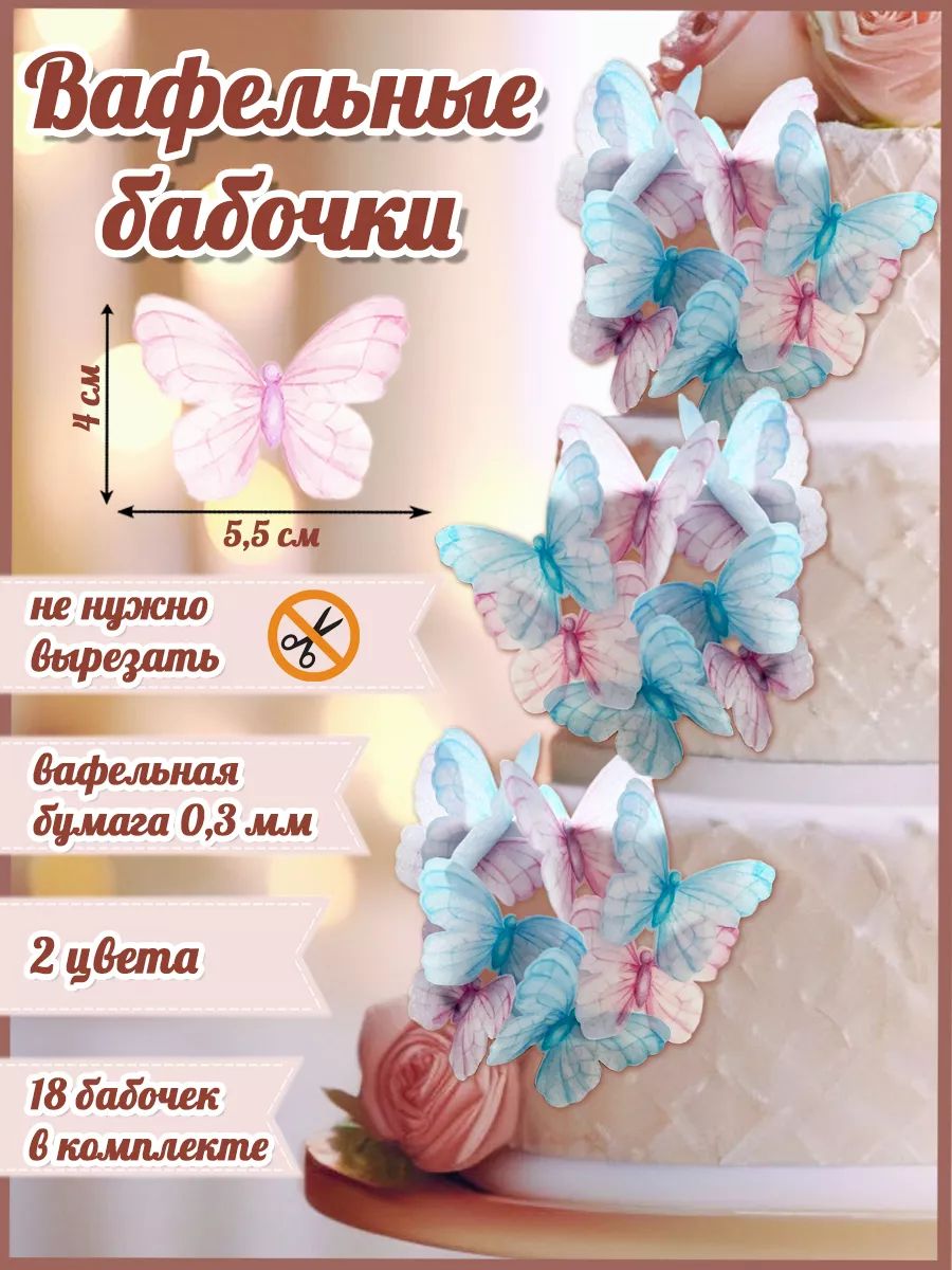 Вафельные бабочки розовые 144 фотографий