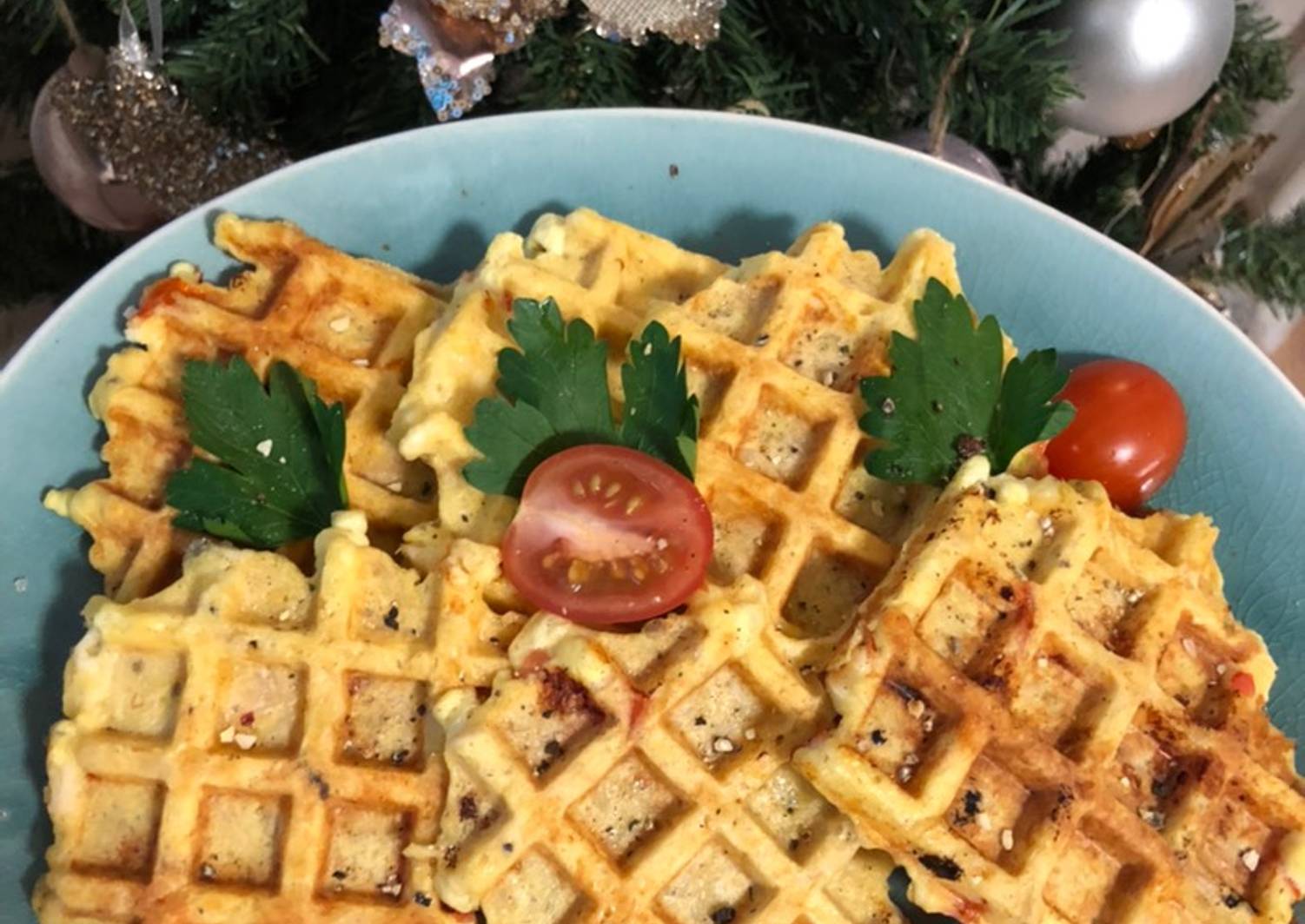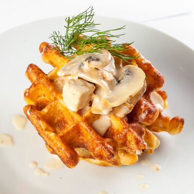 Вафли с курицей и сыром