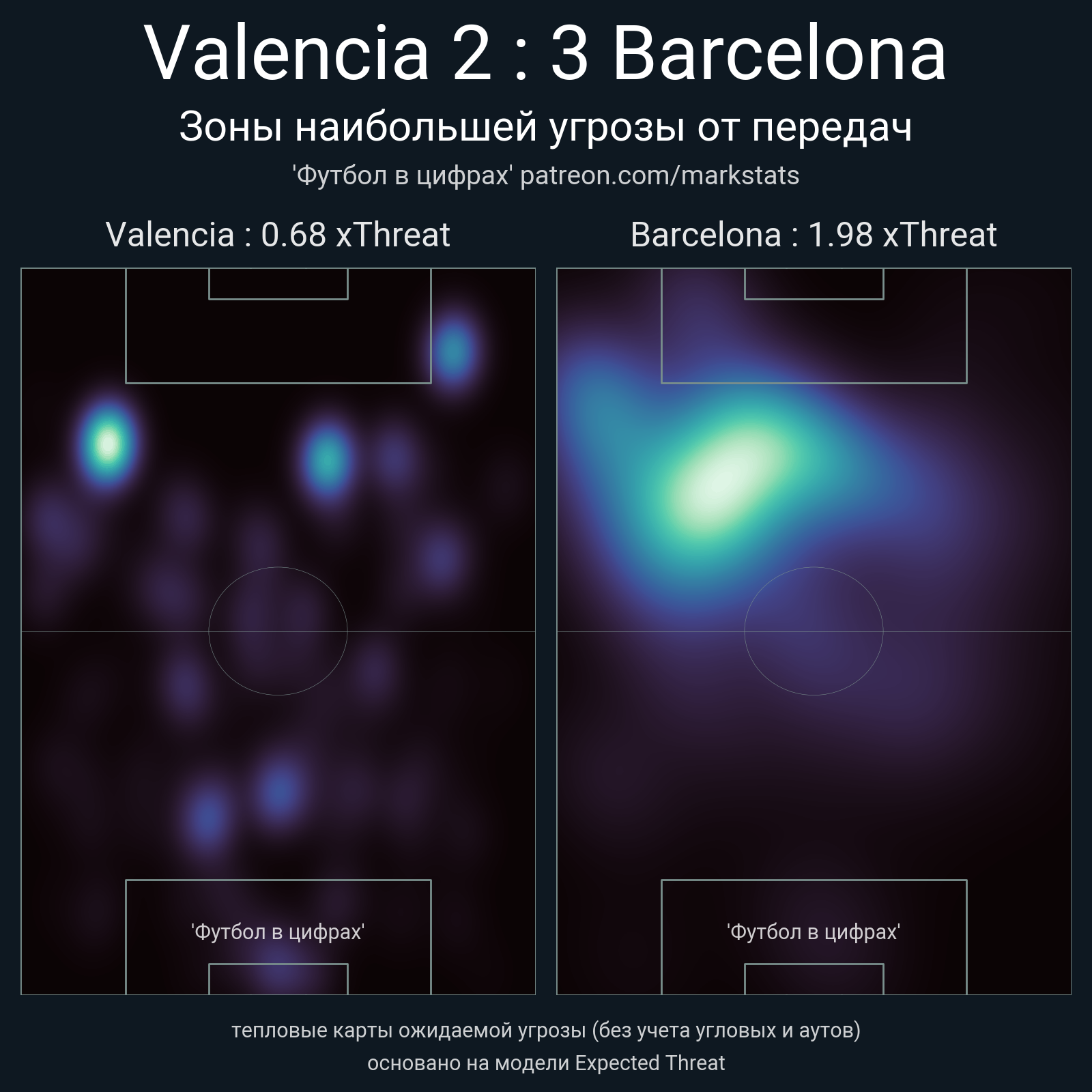 ▪ xThreat без учета угловых: 0.68 - 1.98