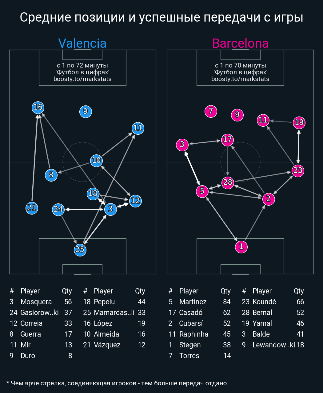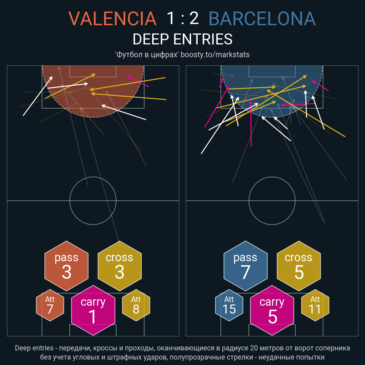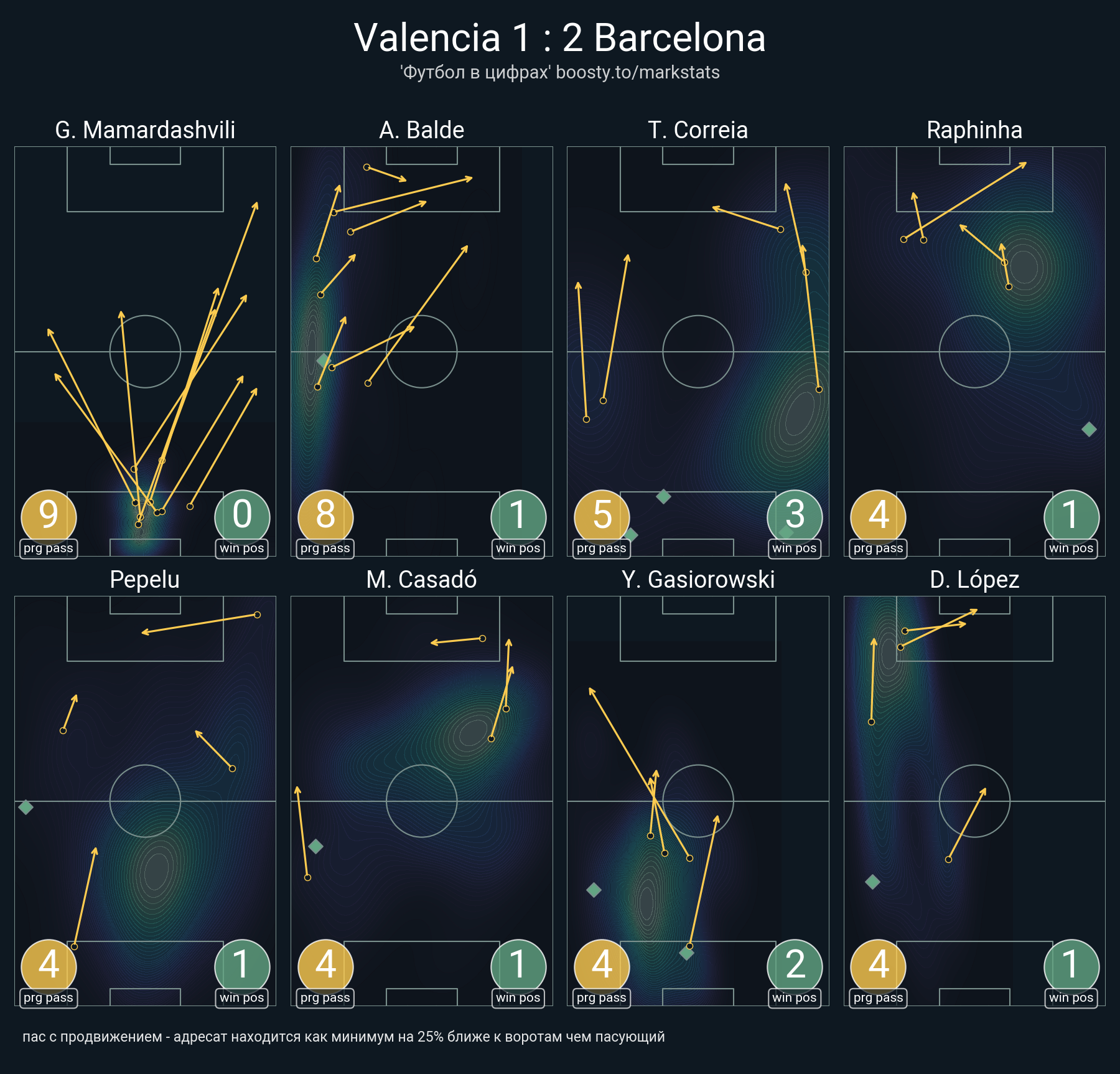 37 успешных передач из 48 попыток (5 с продвижением, 8 на трети соперника)