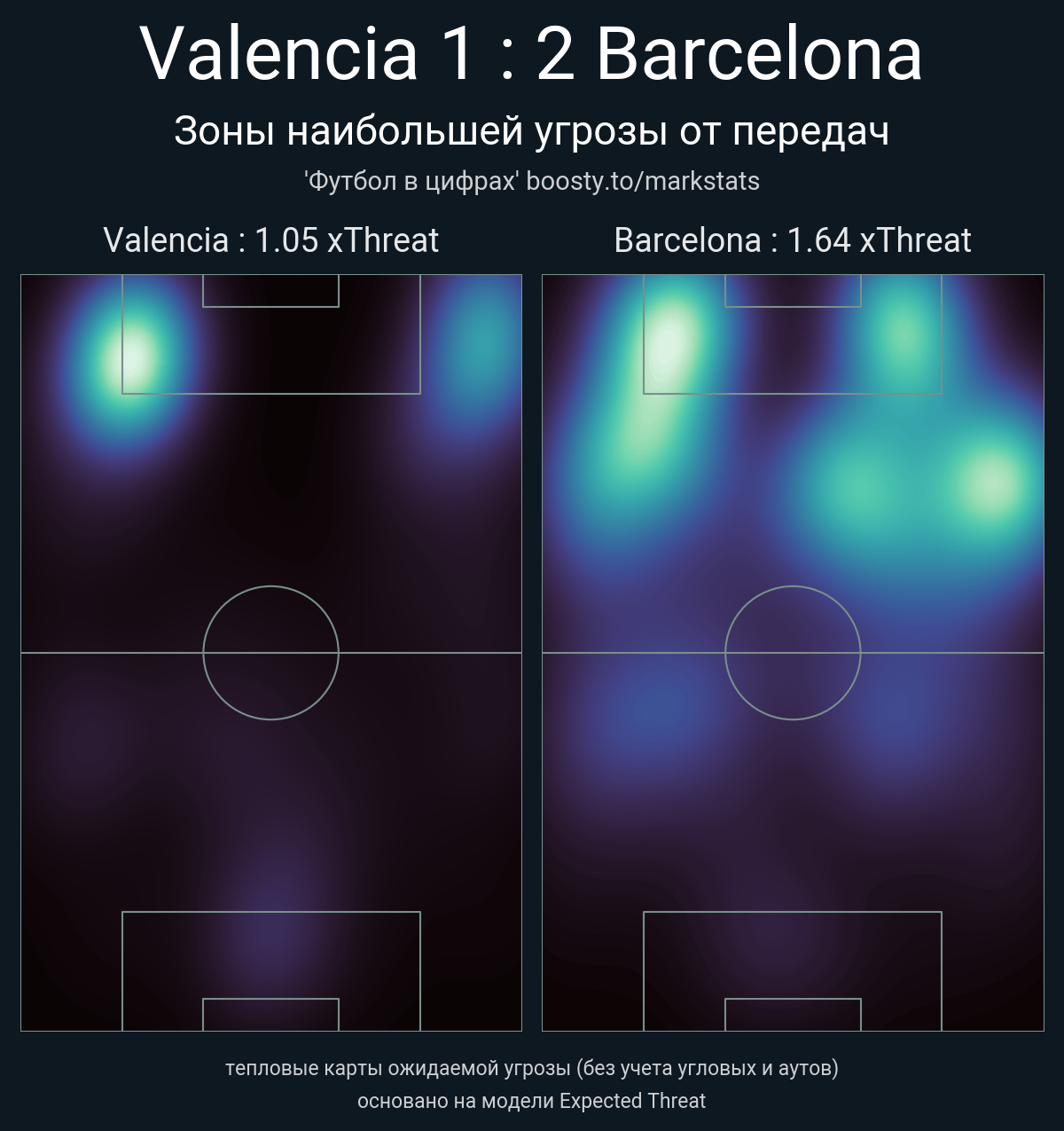 xThreat без учета угловых: 1.05 - 1.64
