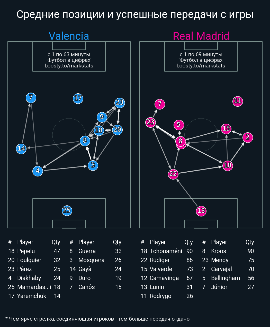 82 успешных передач из 86 попыток (3 с продвижением, 1 на трети соперника)