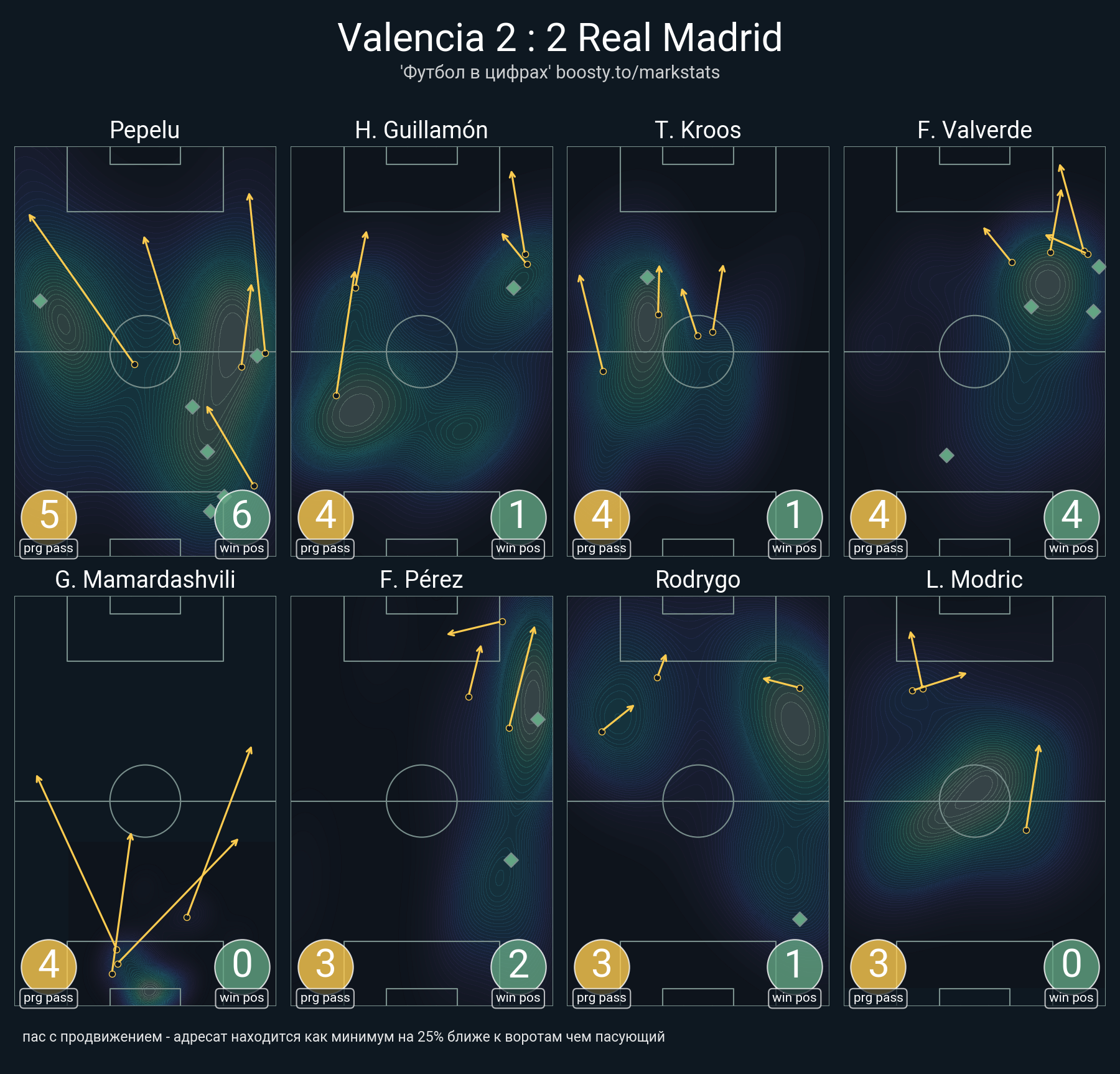 22 успешных передач из 32 попыток (2 под удар, 3 с продвижением, 6 на трети соперника)