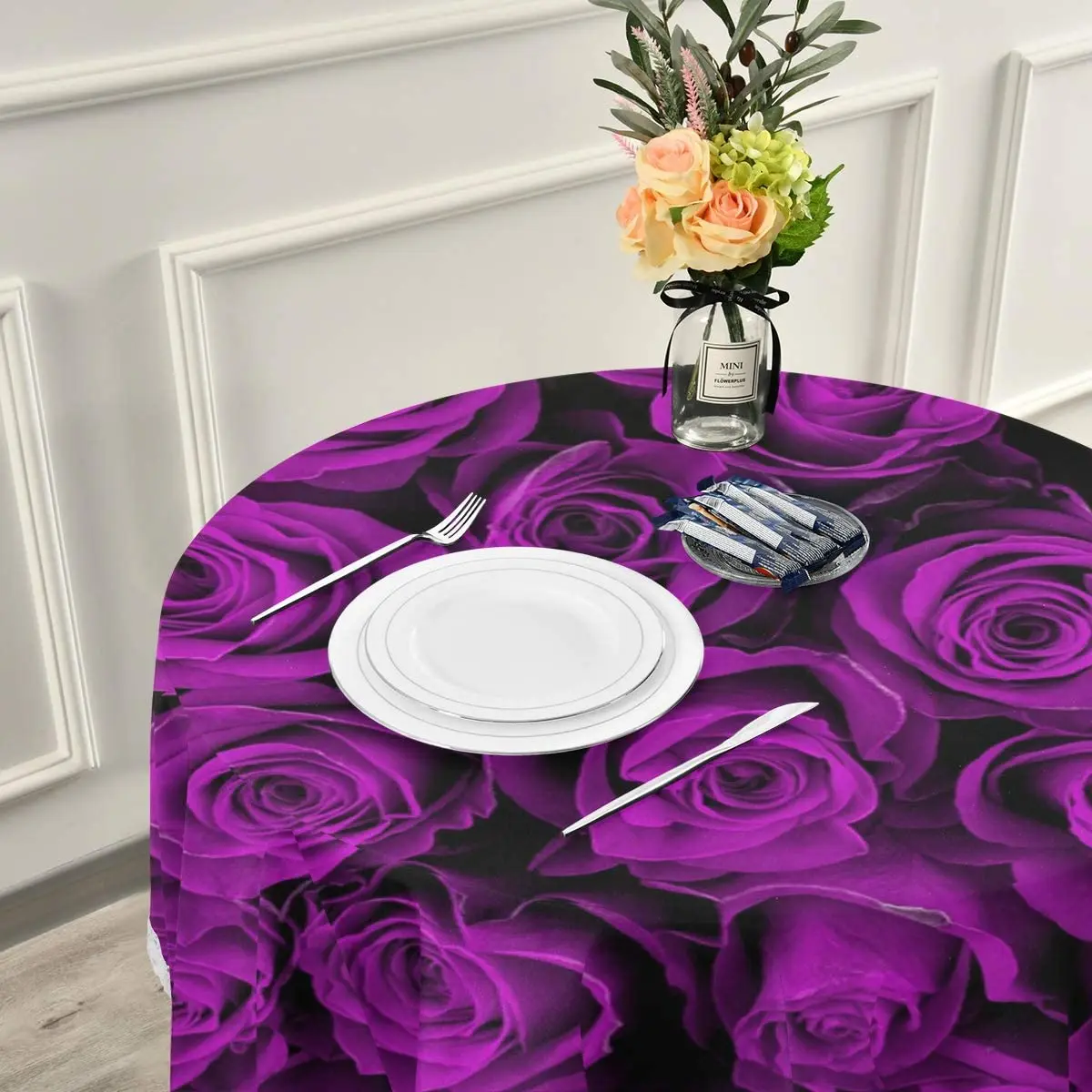 «Valentines Round Tablecloths 60 Inch Purple Rose Circular Table Cover Mat Lace Washable Polyester for Dinner Party Holiday Decor» по лучшей цене на рынке! Всего за 8$ (760рублей)