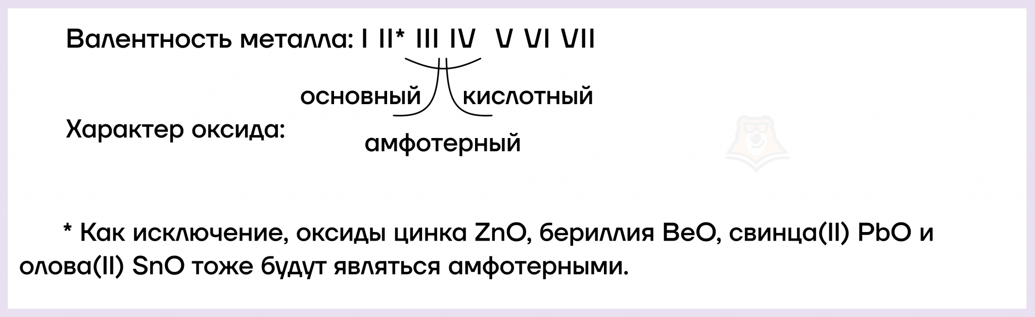 Валентность цинка в оксиде