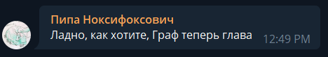 Лидер данной компашки, конечно же, Пипа. Его вы можете найти в администраторах его же группы в телеге.