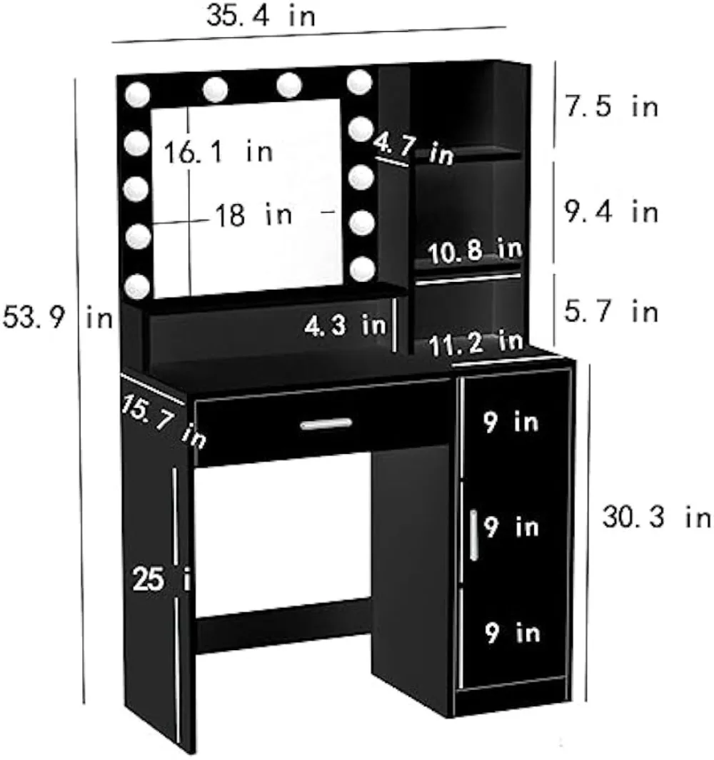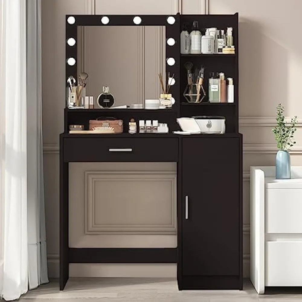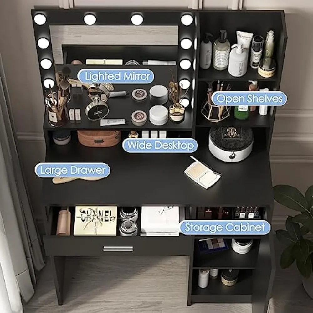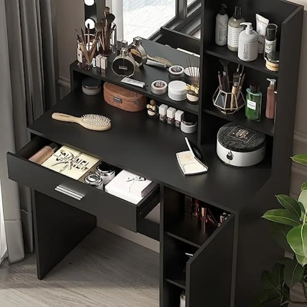 "Vanity Desk with Mirror & Light, Large Drawer & Three Level Storage Dresser, 3 Lighting Modes Adjustable Brightness" * Buy Now With Free Shipping Just For $74