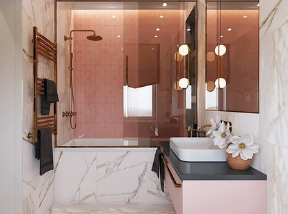 Розовая плитка для ванной: рекомендации дизайнеров