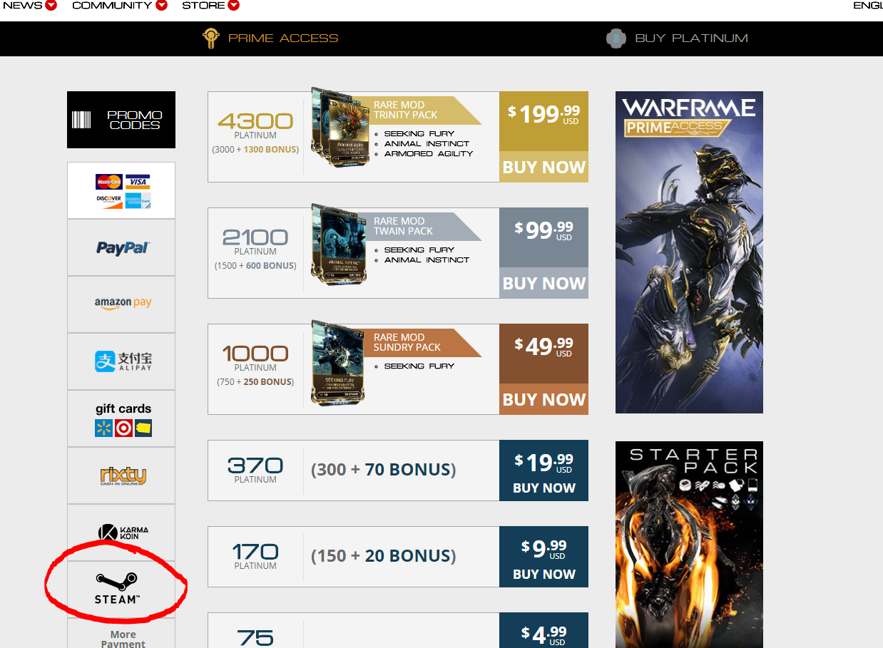 Варфрейм как пополнить платину