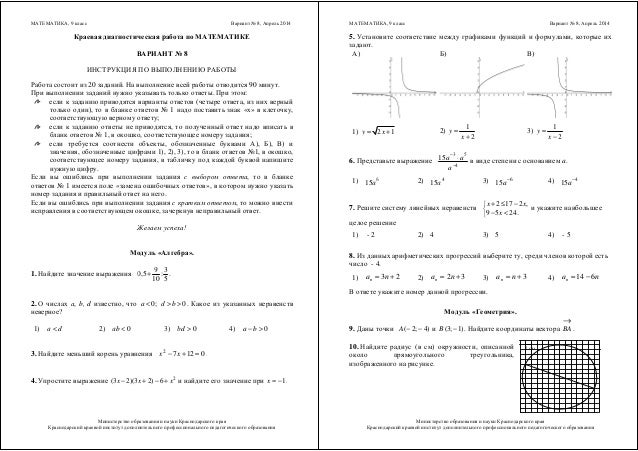 Вариант диагностической работы по математике 9 класс