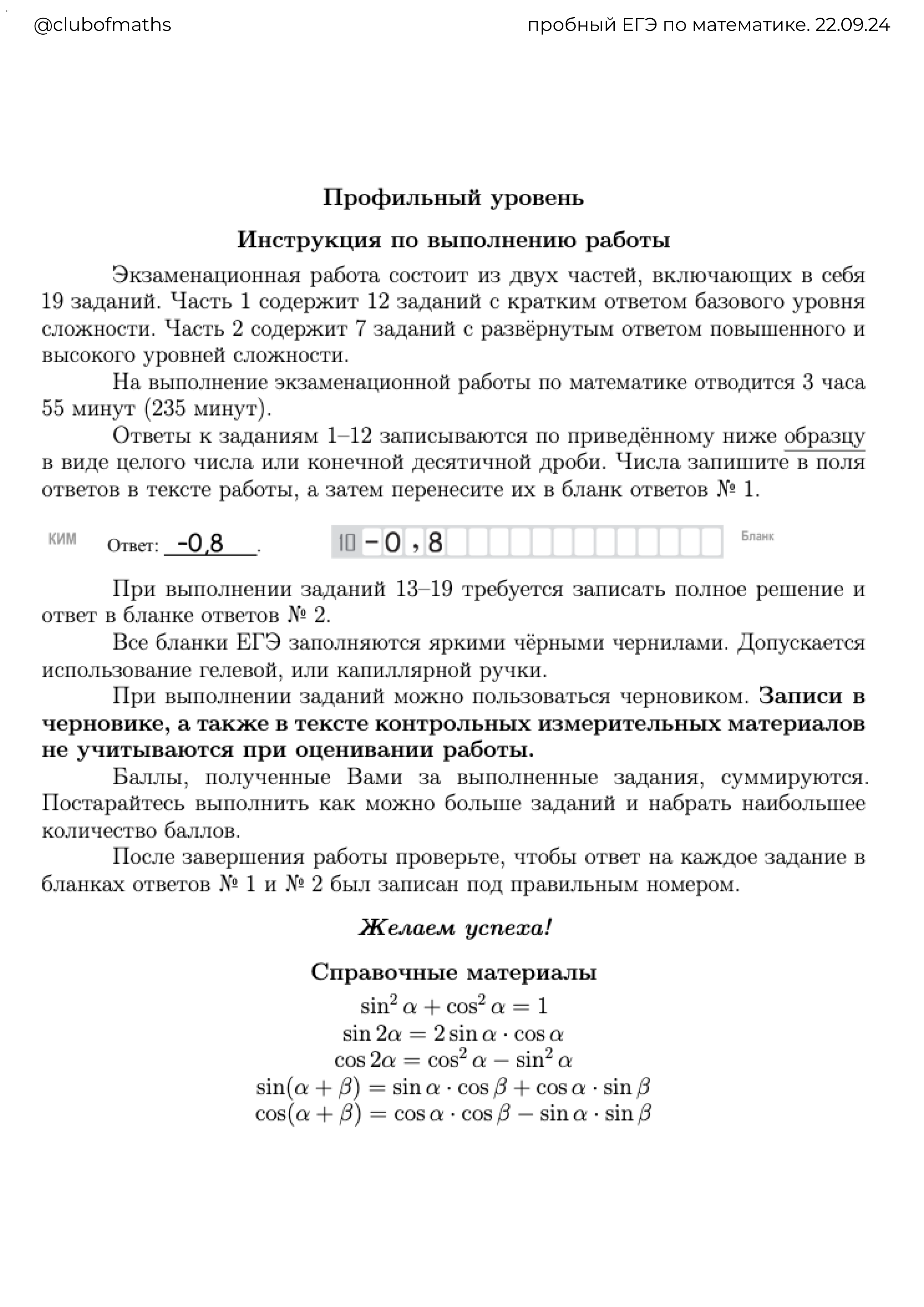 Вариант егэ по математике для 10 класса 96 фотографий