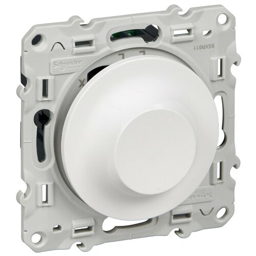 Variateur Schneider Electric ODACE (blanc) à bouton rotatif avec bornes à vis pour une puissance de 40-600 W. - Convient aux lampes à incandescence et halogènes - Degré de protection IP20.
