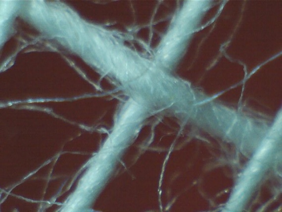 Волокна ваты под микроскопом