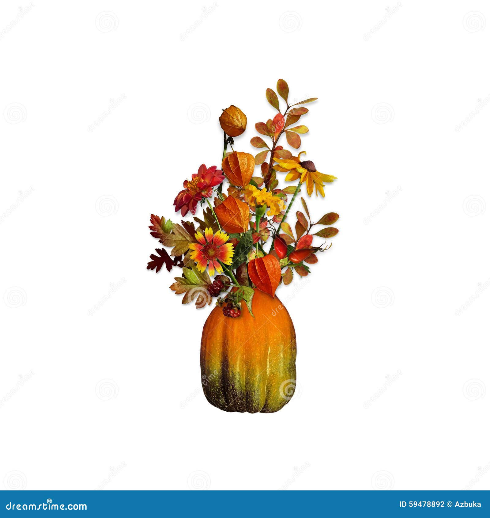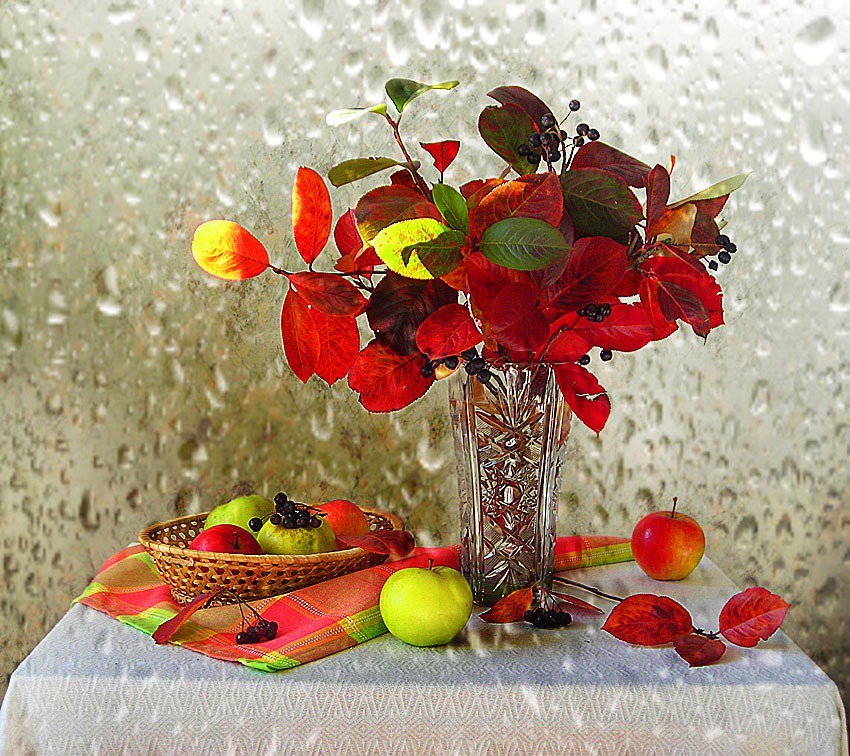 Ваза с осенними листьями и цветами