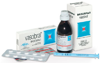 Вазобрал - препарат, способствующий улучшению мозгового и периферического кровообращения . Форма выпуска и состав Таблетки (по 10 штук в блистере, по 1 или 3 блистера в картонной пачке); Раствор для приема внутрь (во флаконах из темного стекла 50 мл с дозирующим шприцем, по 1 флакону в картонной пачке) . Активными веществами Вазобрала являются:
