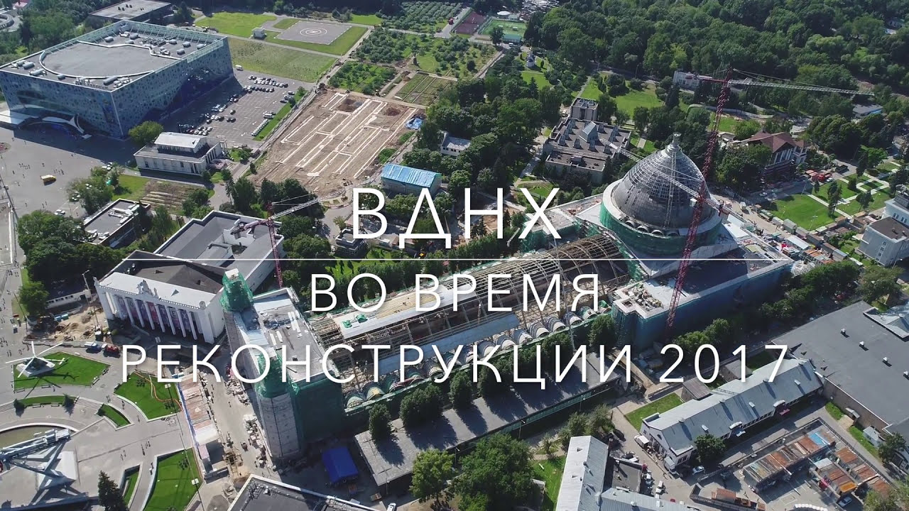 Вид с воздуха части ВДНХ, дальней от главного входа . Практически все павильоны находятся на реконструкции . Снято на DJI Phantom 4 Pro . Отчеты: Посетители Поисковые фразы . Вид сверху . ВДНХ . Москва . Полёт квадрокоптера .