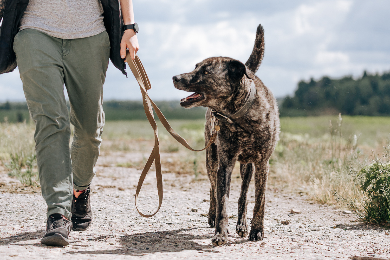 Ринго достаточно самодостаточный мальчик. Ему нравится неторопливо изучать всё вокруг, залипать в запахи и окружающую среду. Он размеренно прогуливается и наслаждается всем вокруг. И если дать ему возможность двигаться в своём темпе, он будет благодарен 😊
