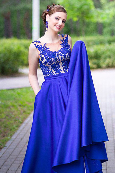 Вечерний образ в синем платье (64 фото)