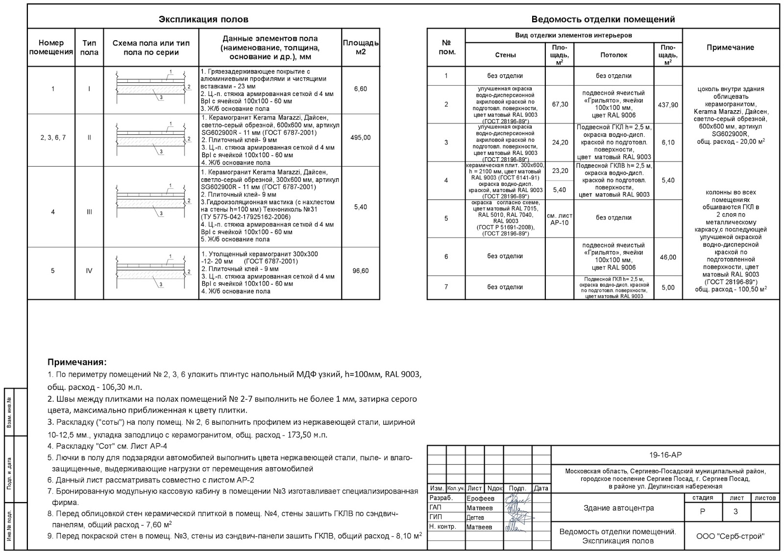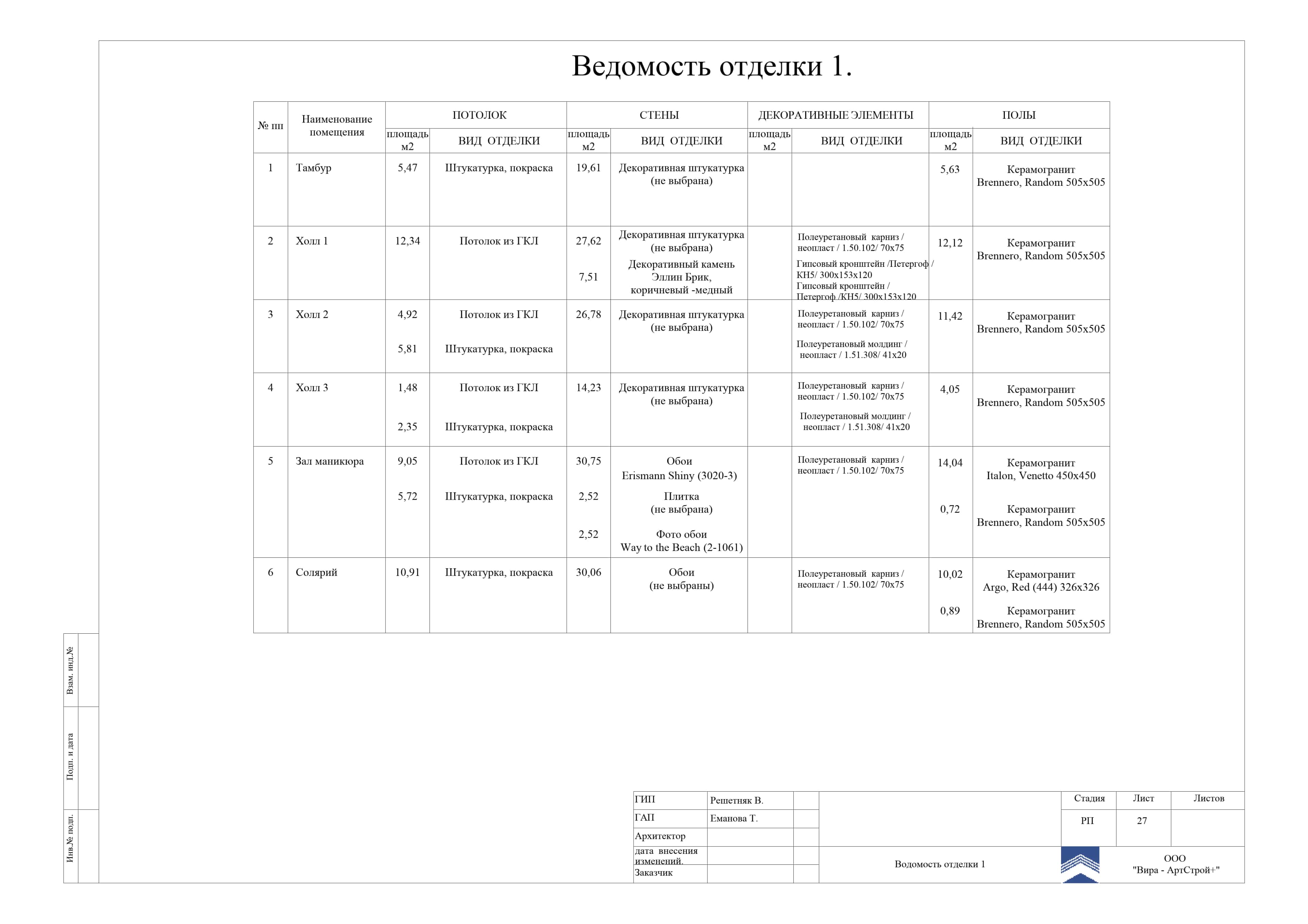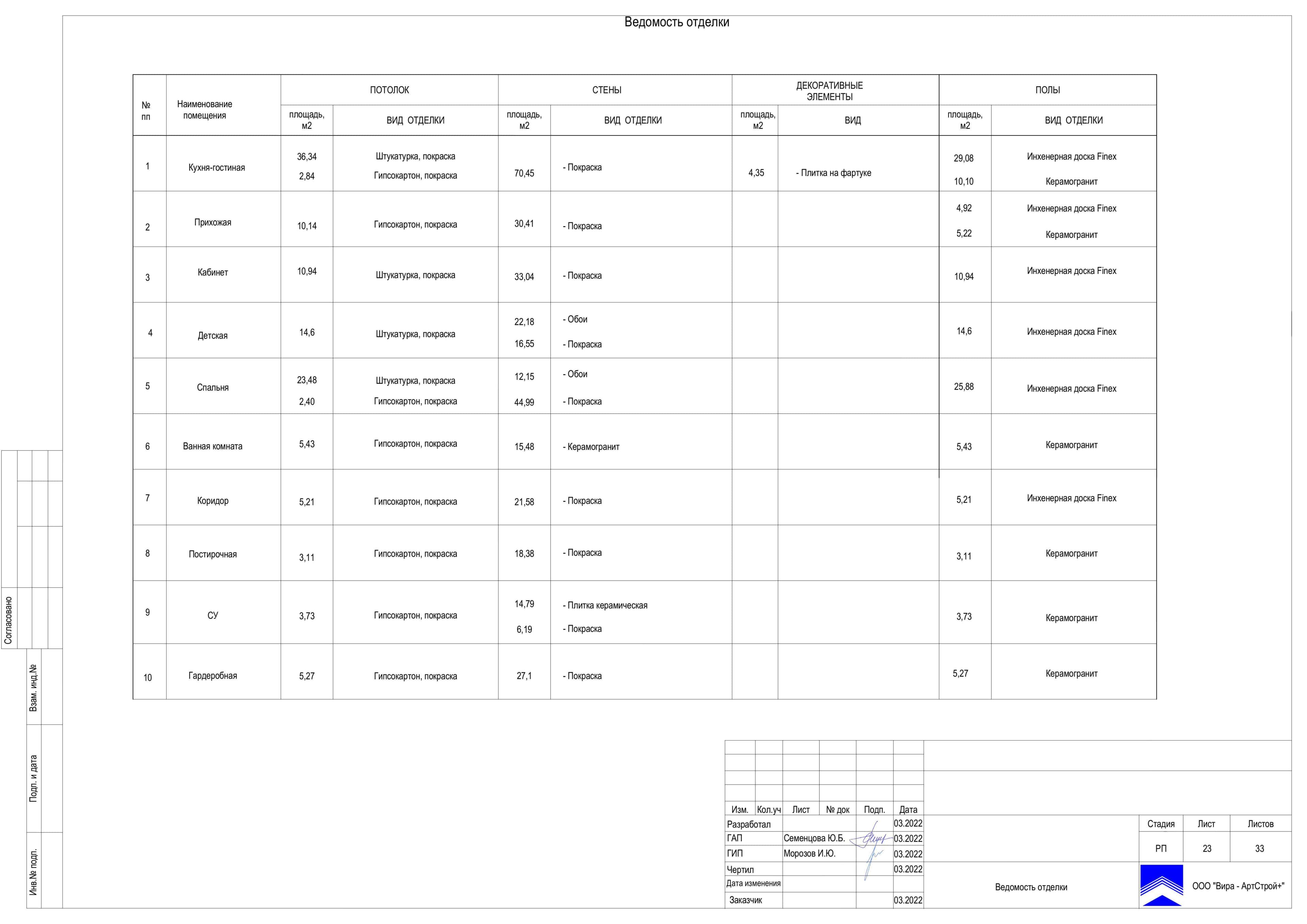Ведомость отделки таблица