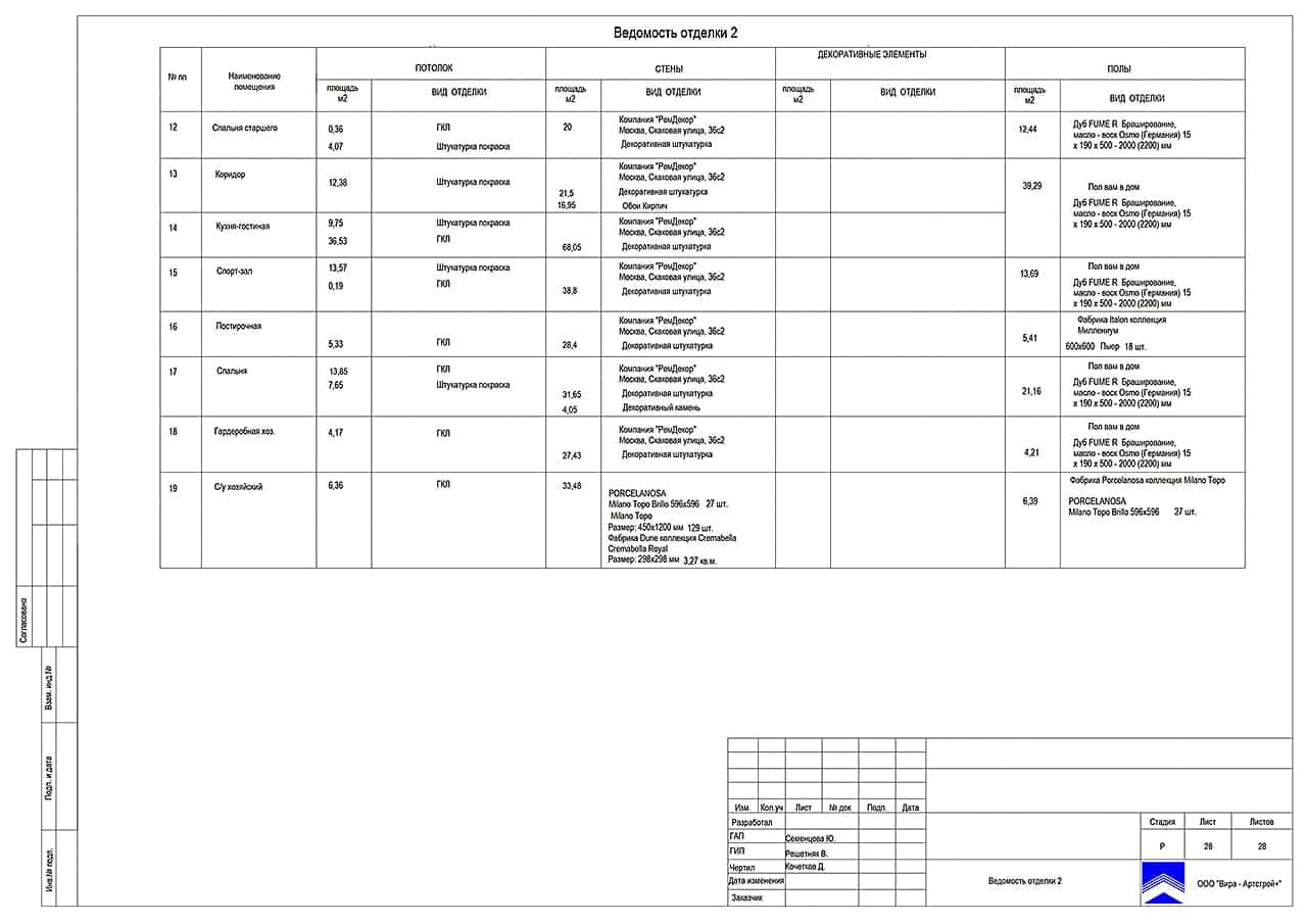 Ведомость отделки таблица 114 фотографий
