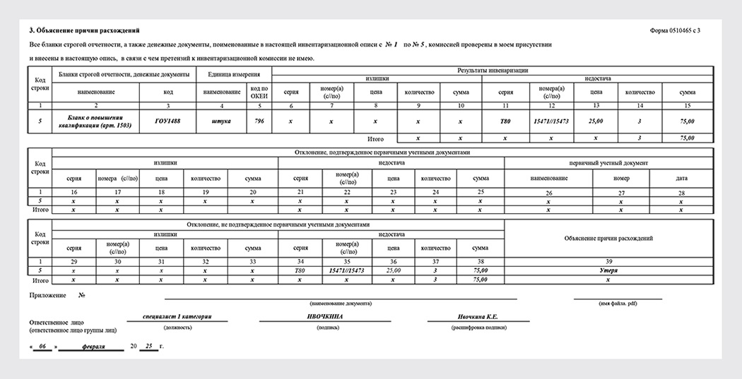 Ведомость расхождений 0504092