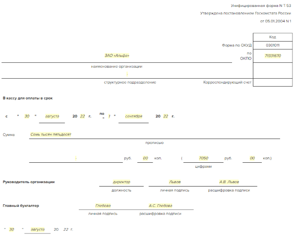 Ведомость учета денежных средств