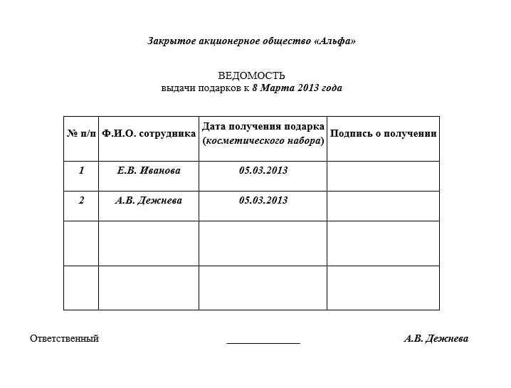 Ведомость выдачи мыла