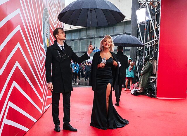 Ведущие "Муз-ТВ" (к Лере и Андрею Разыграеву в здании "Олимпийского" присоединились Макс Данилов и Аврора . . .