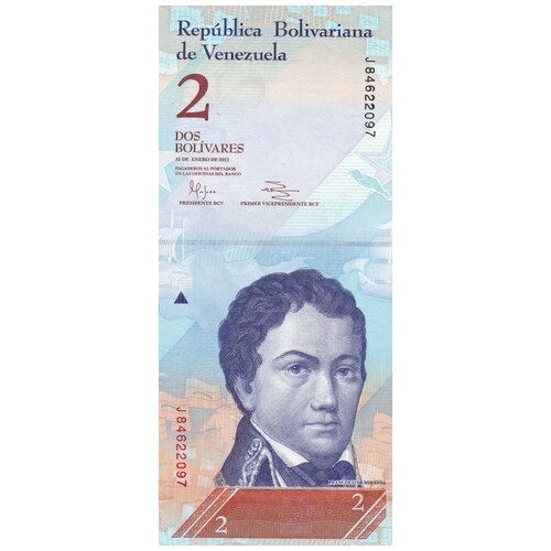 Ön Yüz Francisco de Miranda Portresi Üstte ve altta Mezhep 2 İspanyol Bolivarcı Venezuela Cumhuriyeti Yazıtı Banka şubelerinde hamiline ödenecek iki bolivar Ters Yunuslar Sol arması Sağ alt köşede Mezhep 2 İspanyol Venezuela Merkez Bankası Yazıtı İki bolivar Ülke: VenezuelaGxDxY: 157x70x1Ağırlık: 0,00 1Mezhep : 2 bolivar Basım türü: Dolaşım için Malzeme: Kağıt Yılı: 2012 Koruma durumu: ÇİL