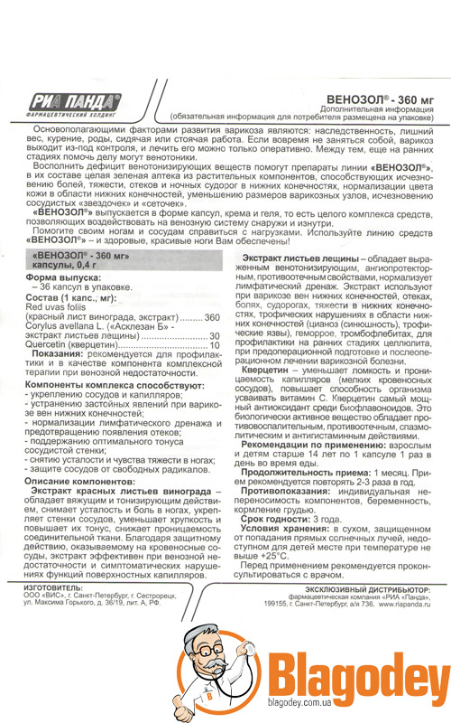 Венозол® 360 (Venozol® 360): инструкция, показания, состав . . .