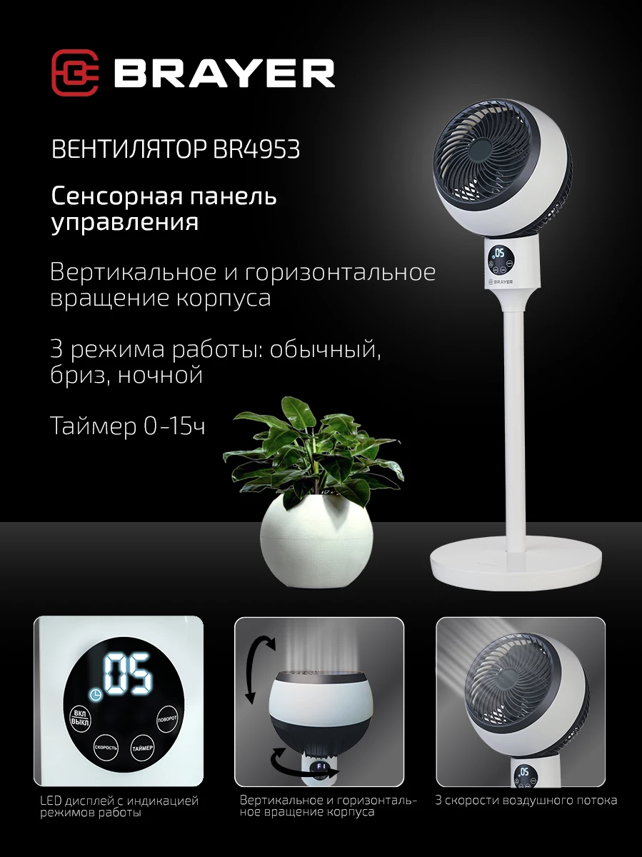 Вентилятор brayer br4974 черный 153 фото
