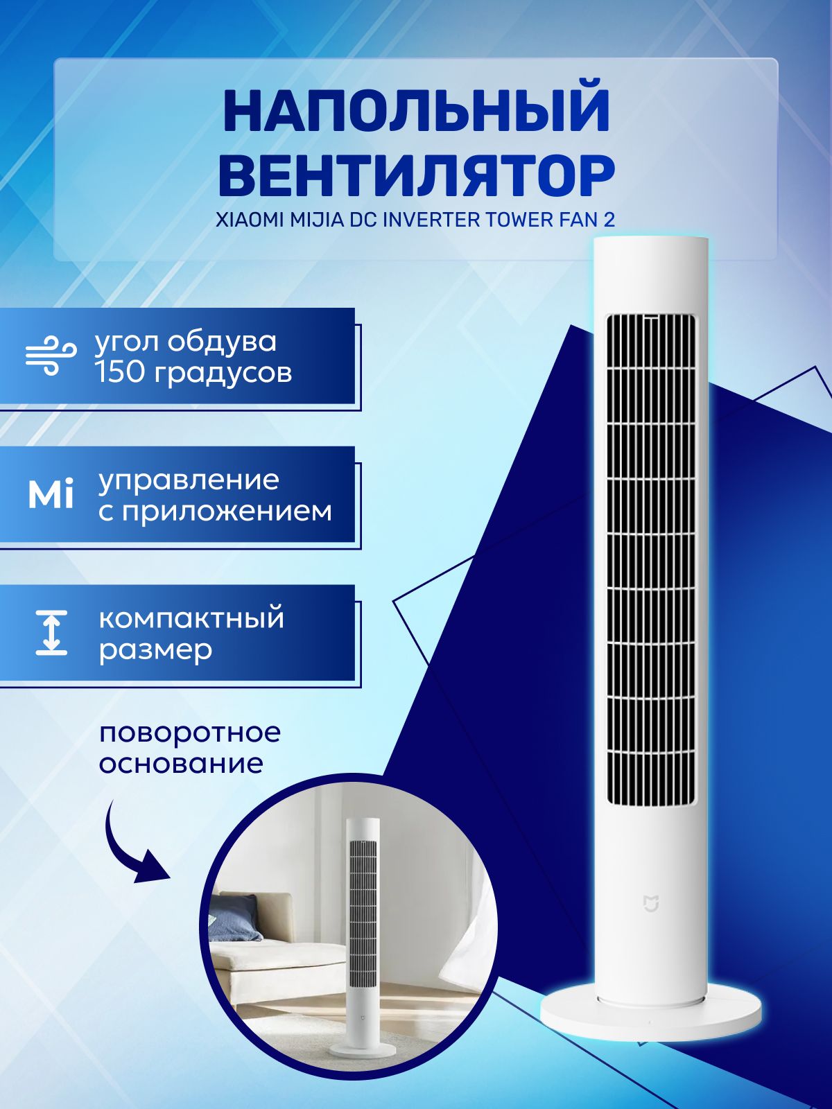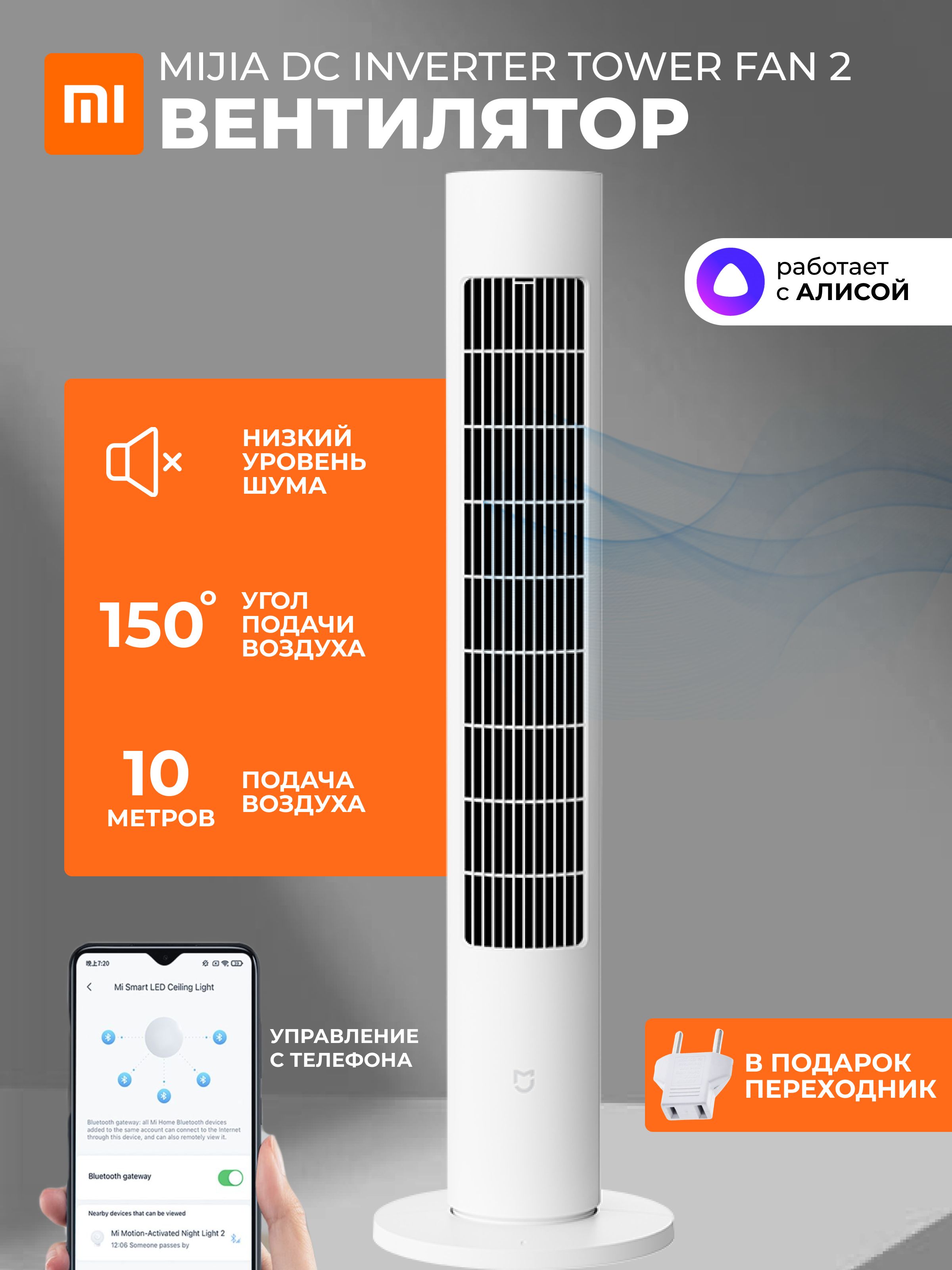 Вентилятор mijia inverter tower fan белый 107 фото