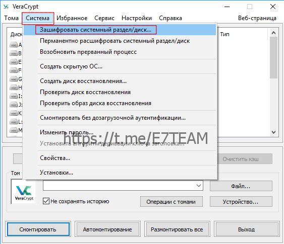 Выбираем "Зашифровать системный диск/раздел"