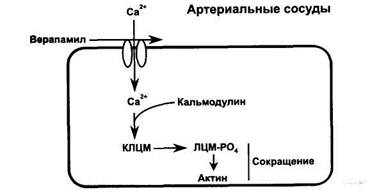 Верапамил . . . Блокирует кальциевые каналы, тормозит трансмембранное поступление ионов кальция в клетки гладкой мускулатуры артериальных сосудов и кардиомиоцитов .