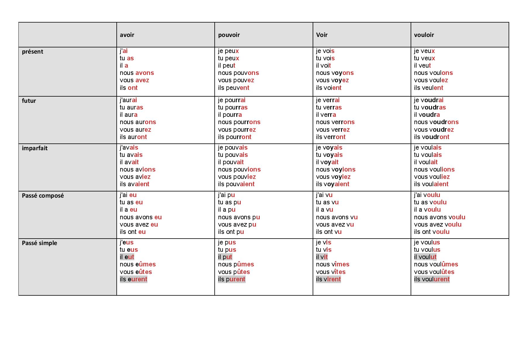 Verbes vouloir