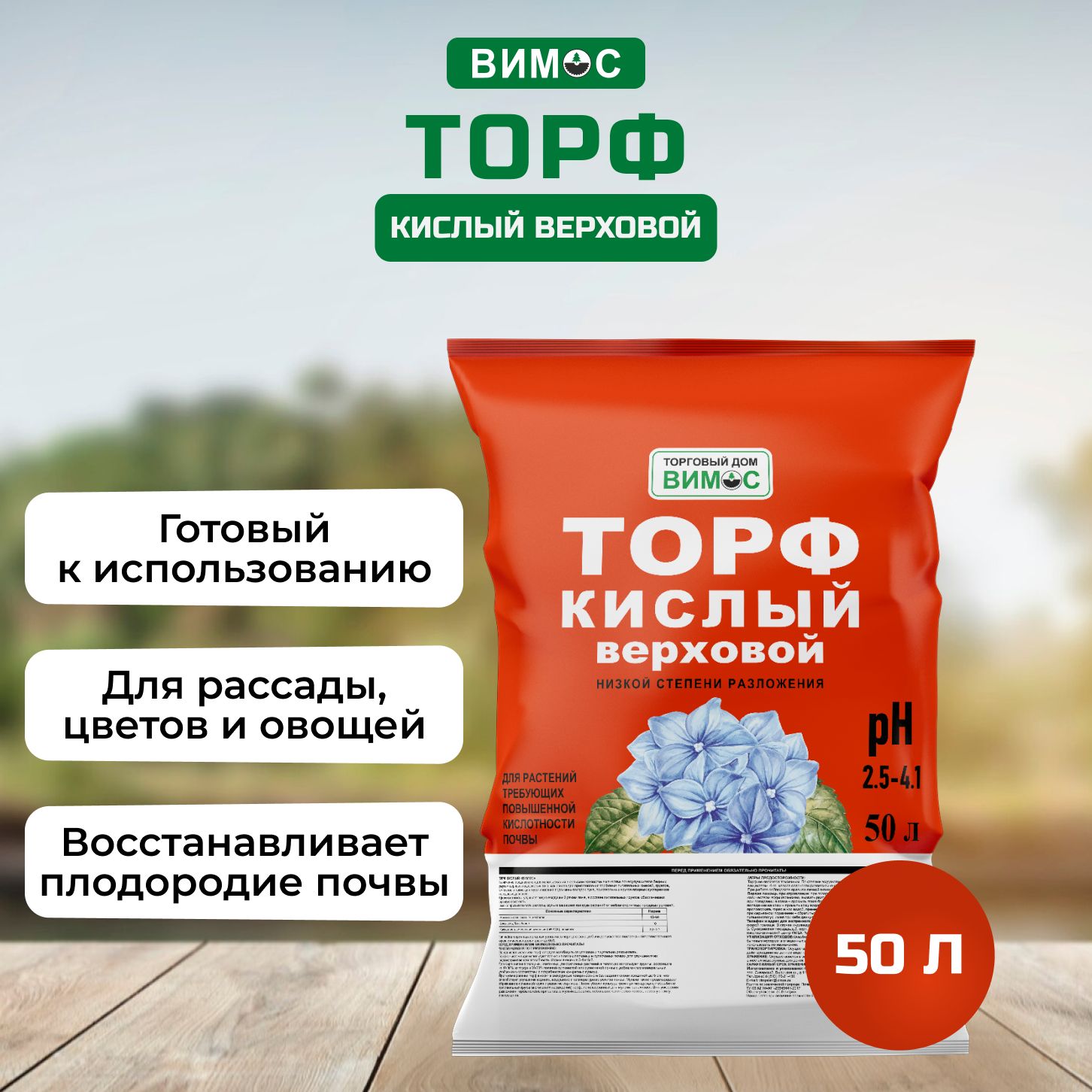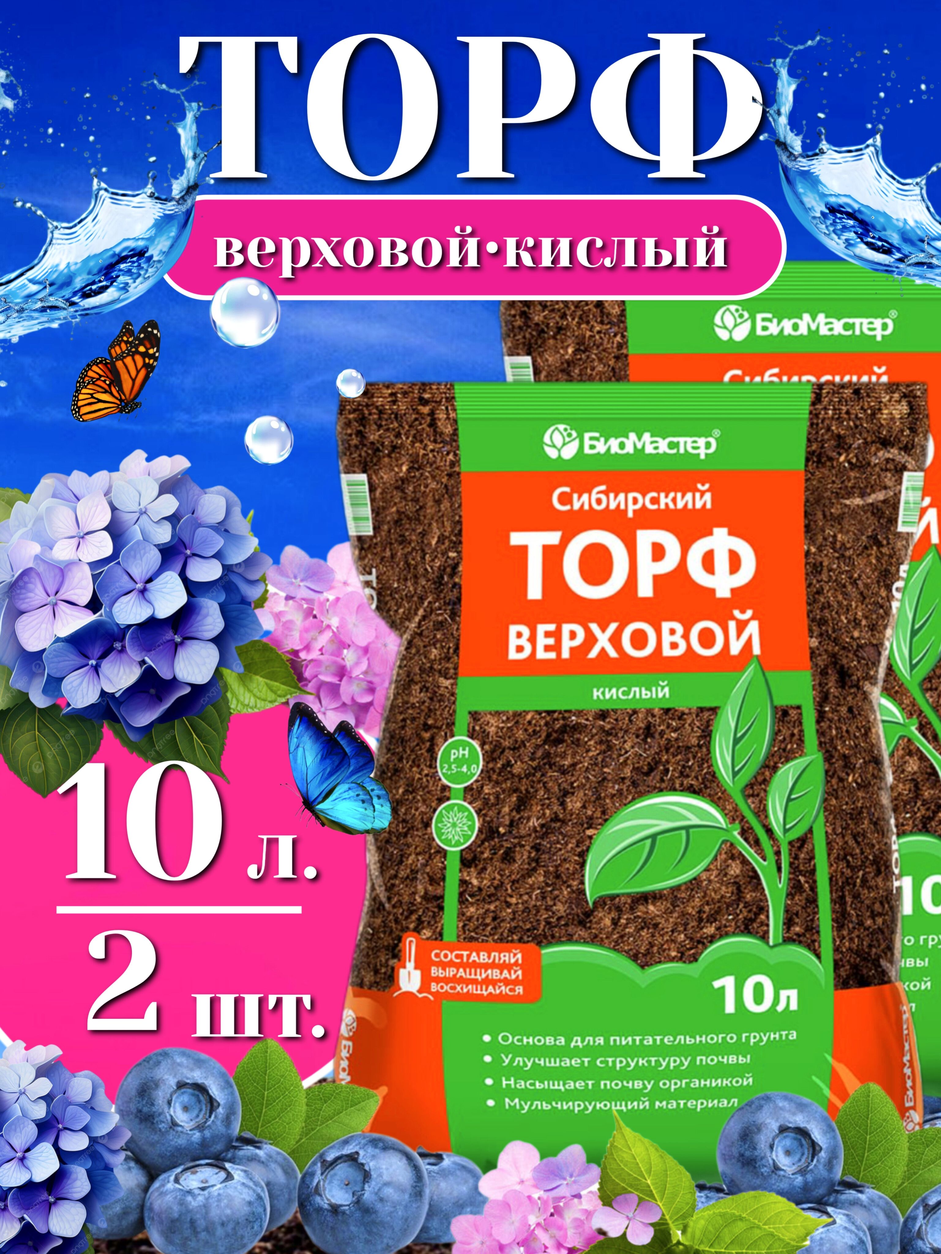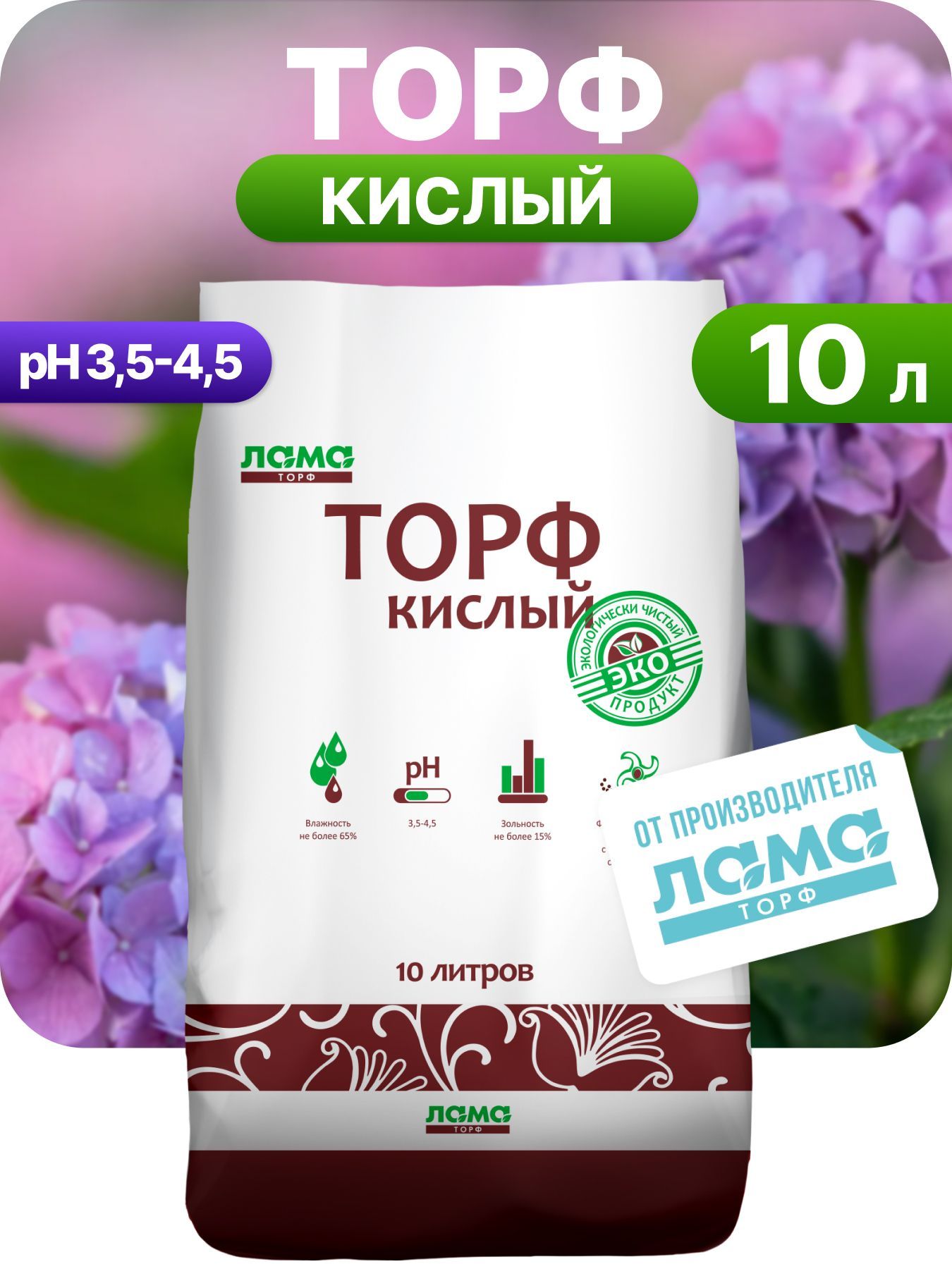 Верховой торф для гортензий