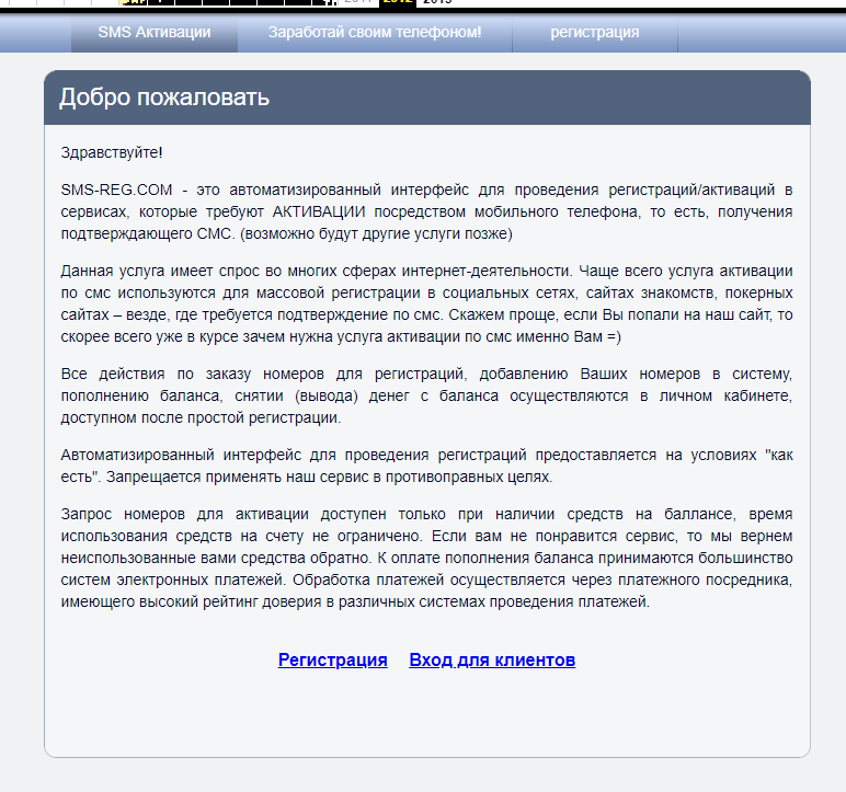 sms-reg.com – 2011 год.