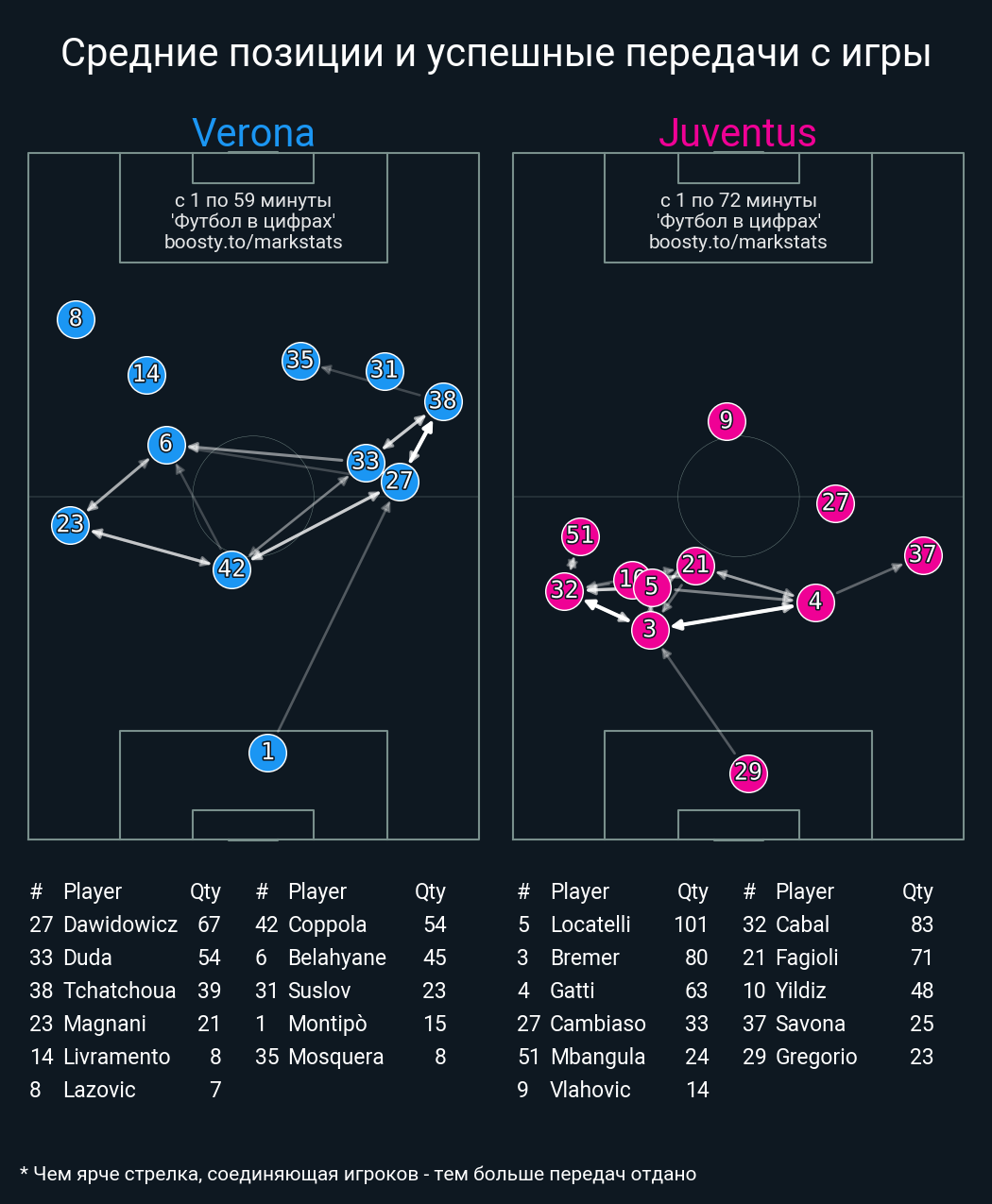 67 успешных передач из 71 попыток (1 под удар, 4 с продвижением, 1 на трети соперника)