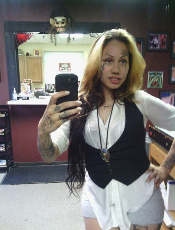 Tattooed woman talking dirty while dives